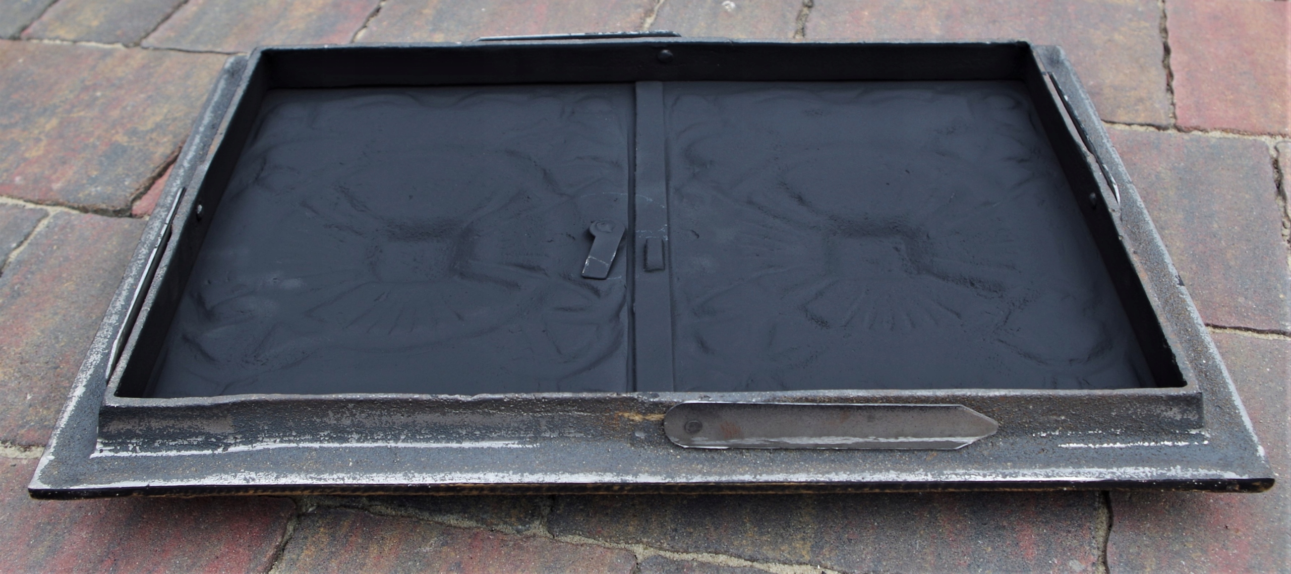Чавунні дверцята використовуються для домашніх коптилень, хлібопічок, камінів і т.д. З тильного боку рами є кріпильні кронштейни.