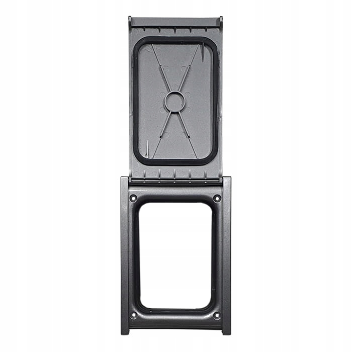 Дверцята для всмоктування Retraflex II з високоякісного естетичного ПВХ кольору перламутровий графіт. Вони використовуються для герметизації розетки та її легкого відкривання та закривання. Двері прилягають до стіни та адаптуються до товщини штукатурки (макс. 25 мм). Для забезпечення максимальної довговічності виробу двері були пофарбовані промисловою фарбою для яхт, а потім закріплені високоякісним прозорим лаком.