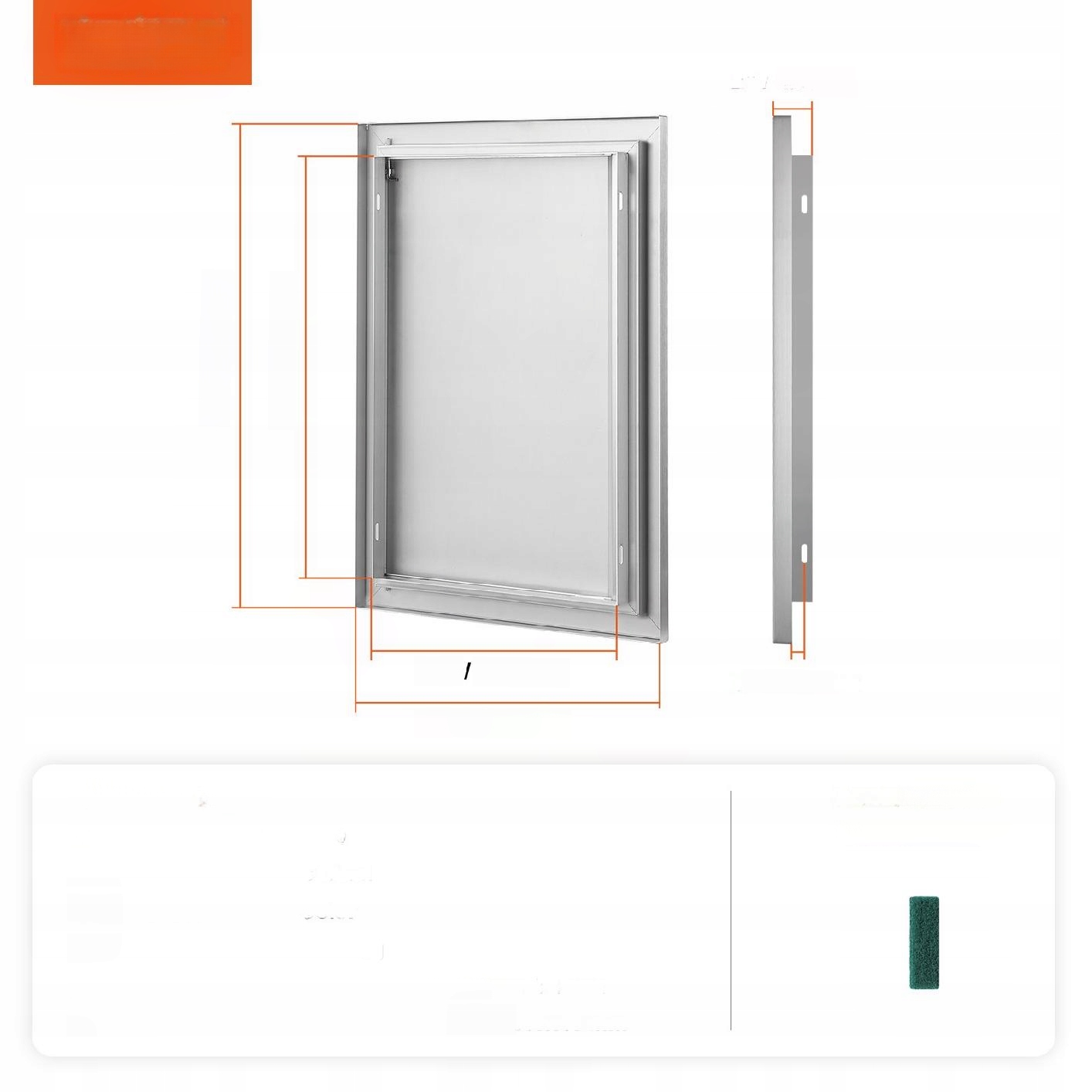 Габаритні розміри: 432x610x46 мм, монтажний розмір: 347x525 мм, рекомендовано резервувати додатково 2 мм на цій основі для кращої продуктивності. Двері були розроблені спеціально для відкритих кухонь і гриль-острівців, додаючи елегантний відтінок зоні приготування їжі. Завдяки точним розмірам їх легко обробляти, монтувати та розбирати. Доступні в різноманітних розмірах і стилях, вони ідеально підходять для внутрішніх/зовнішніх кухонь та інших погодних умов.