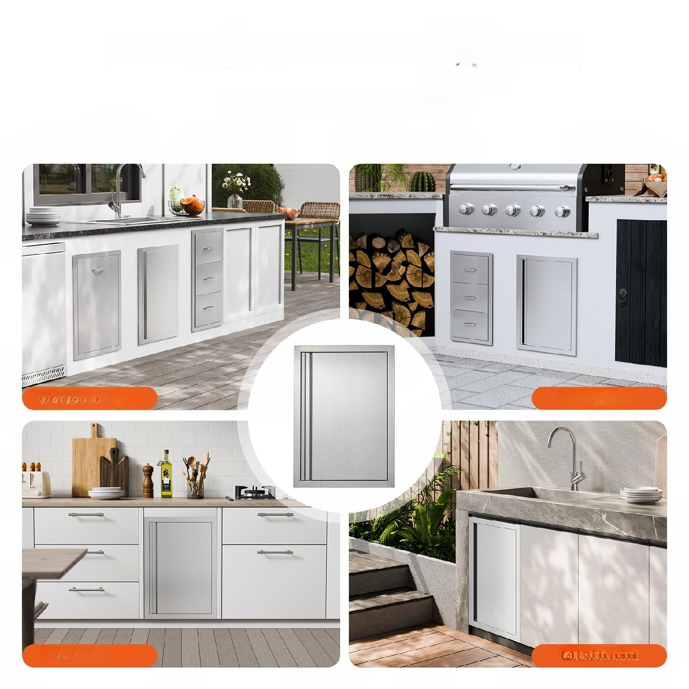 Кухонний острів для барбекю ідеально підходить для внутрішніх/зовнішніх кухонь та інших погодних умов на відкритому повітрі. В основному використовується на вуличних кухнях, шафах для зберігання грилів, стільницях для грилів, зовнішніх шафах і відкритих грилях.