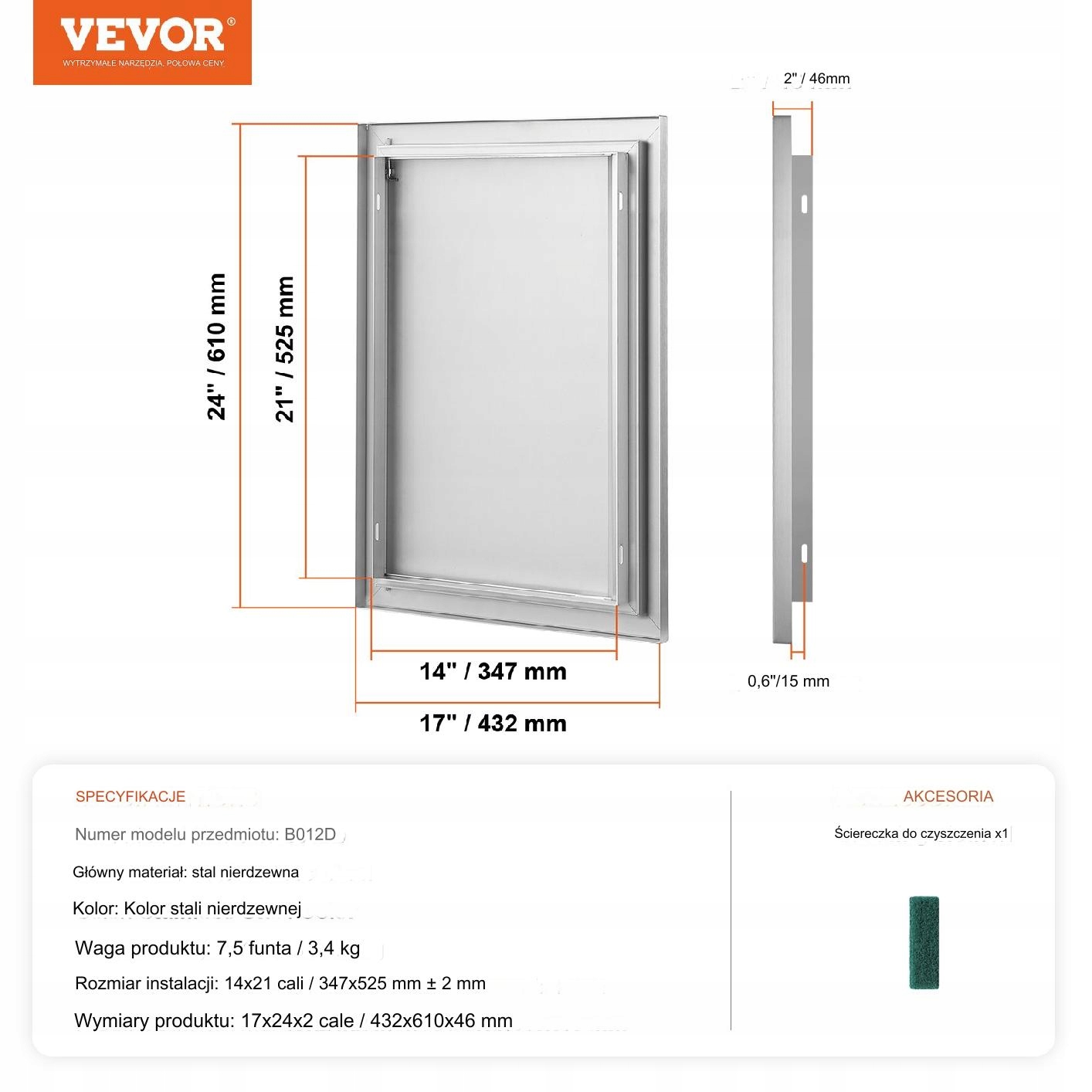Загальні розміри: 432x610x46 мм, розмір кріплення: 347x525 мм, рекомендується зарезервувати додаткові 2 мм для кращої роботи на цій основі. Двері були розроблені спеціально для зовнішніх кухонь та грильових островів, додавши елегантному акценту до зони приготування. Завдяки точним розмірам, їх легко обробити, збирають та розбирають. Доступні в різних розмірах та стилях, вони ідеально підходять для внутрішніх / зовнішніх кухонь та всіх інших погодних умов на вулиці.