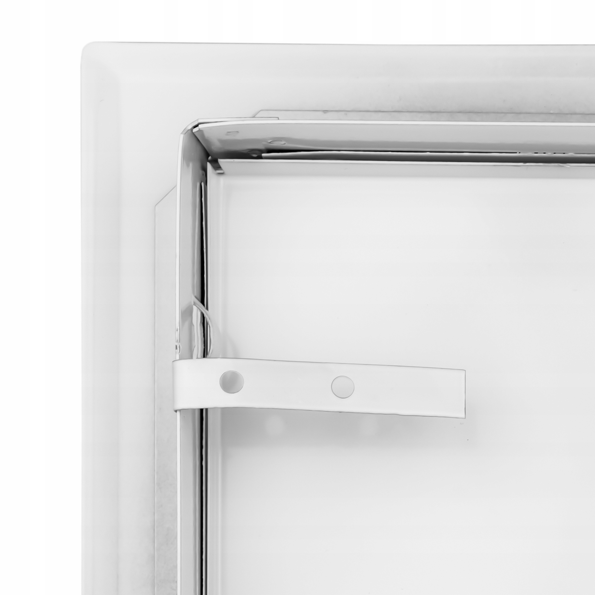 Двері ревізії виготовляються з гальванізованого сталевого листа, що гарантує корозійну стійкість і дуже тривалий термін життя. Пофарбований білою порошковою фарбою.