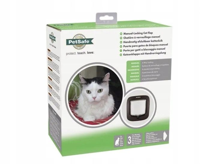 Двері для кішки або меншої коричневої собаки, яка ідеально пристосувалася до дерев’яних вікон та дверей або з шпоном, що нагадує деревину! Клапан для маленьких собак та котів має чотири варіанти переходу. Цей тип дверей може бути встановлений у дерев’яних, металевих дверях, ПВХ і у вікнах і навіть у стінах. Уривок ручного блокування Petsafe є двостороннім.