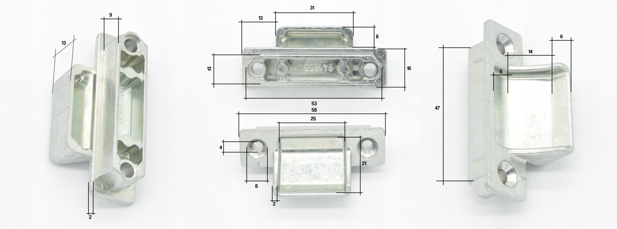 Опис: елемент виготовлено з алюмінію. Призначений для пластикових вікон. Такий тип тиску використовується у внутрішній частині вікна (стулки). Призначено для вибраних профілів Rehau S 730.