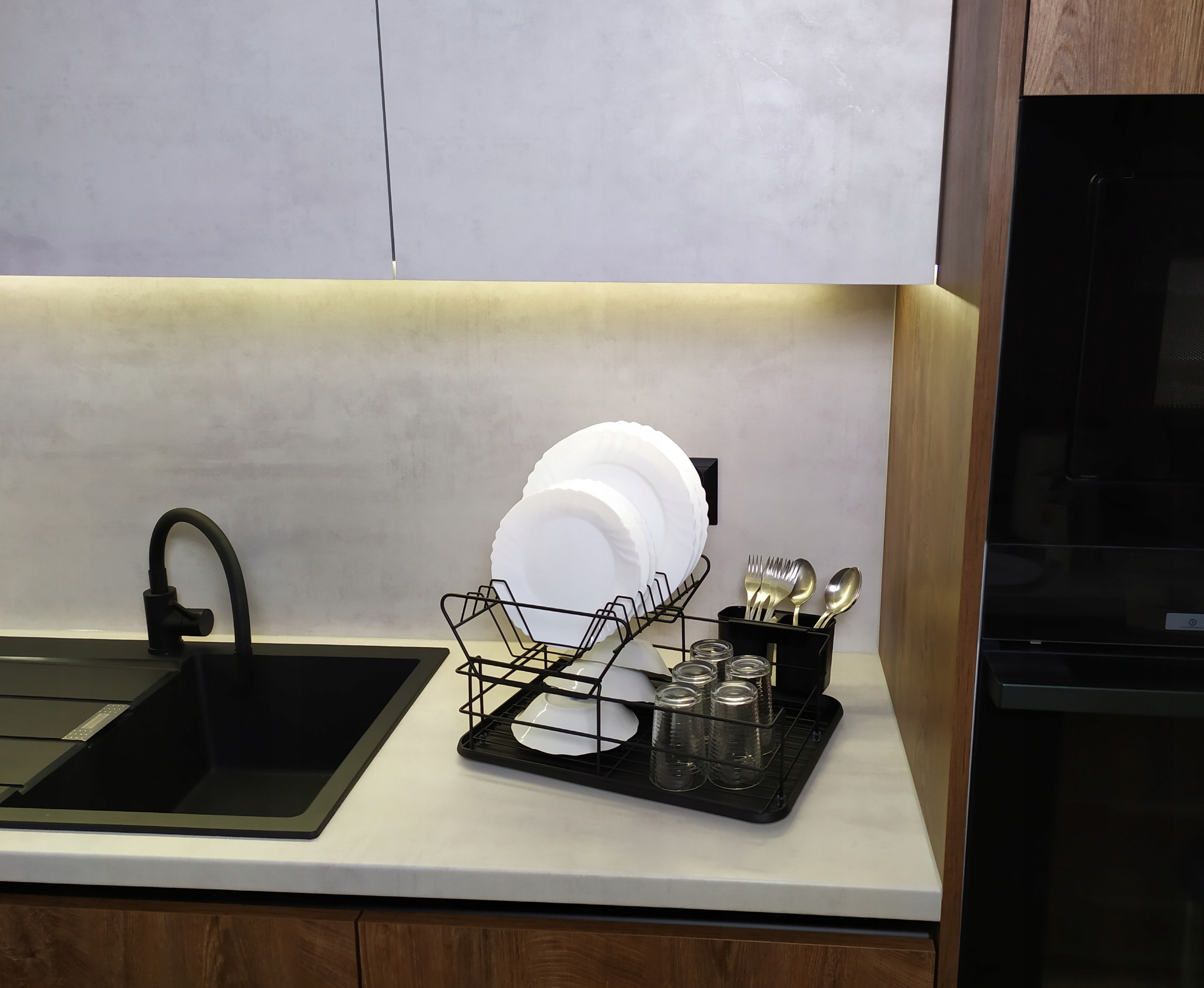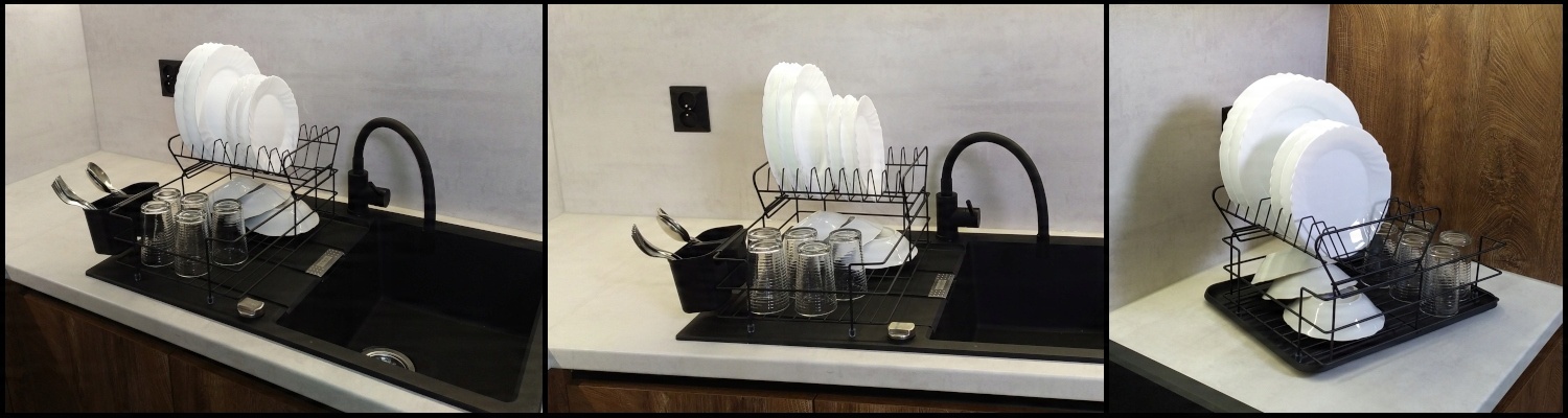 ✅Металева рамка, пофарбована в чорний колір, чудово виглядатиме на вашій кухні. Заокруглені та гладкі краї роблять продукт Brunbeste безпечним та простим у використанні. Вся металева конструкція пофарбована порошковою фарбою в єдиний колір - чорний. Чудово виглядає на кухні та ідеально виконує свої функції. Посуд швидко висихає на сушці, а завдяки подушечці, яка збирає воду, знайде місце на кожній кухні.