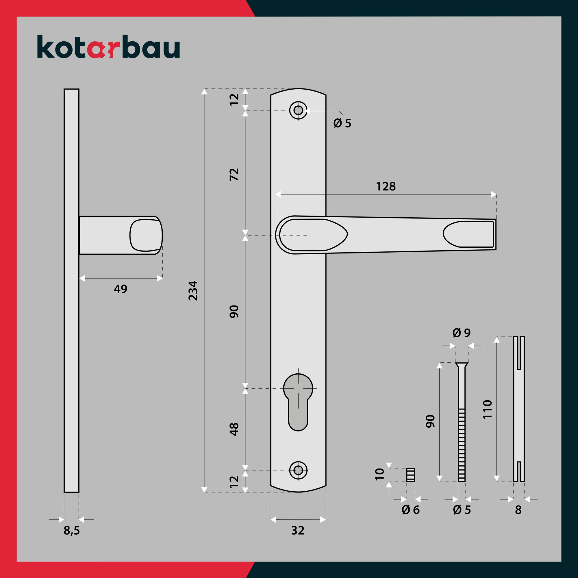 ДВЕРНА РУЧКА ДОВГА НАКЛАДКА ДЛЯ АЛЮМІНІЄВОЇ ВСТАВКИ 90 ММ ДЛЯ ДВЕРЕЙ, ВОРІТ І ГНОТ