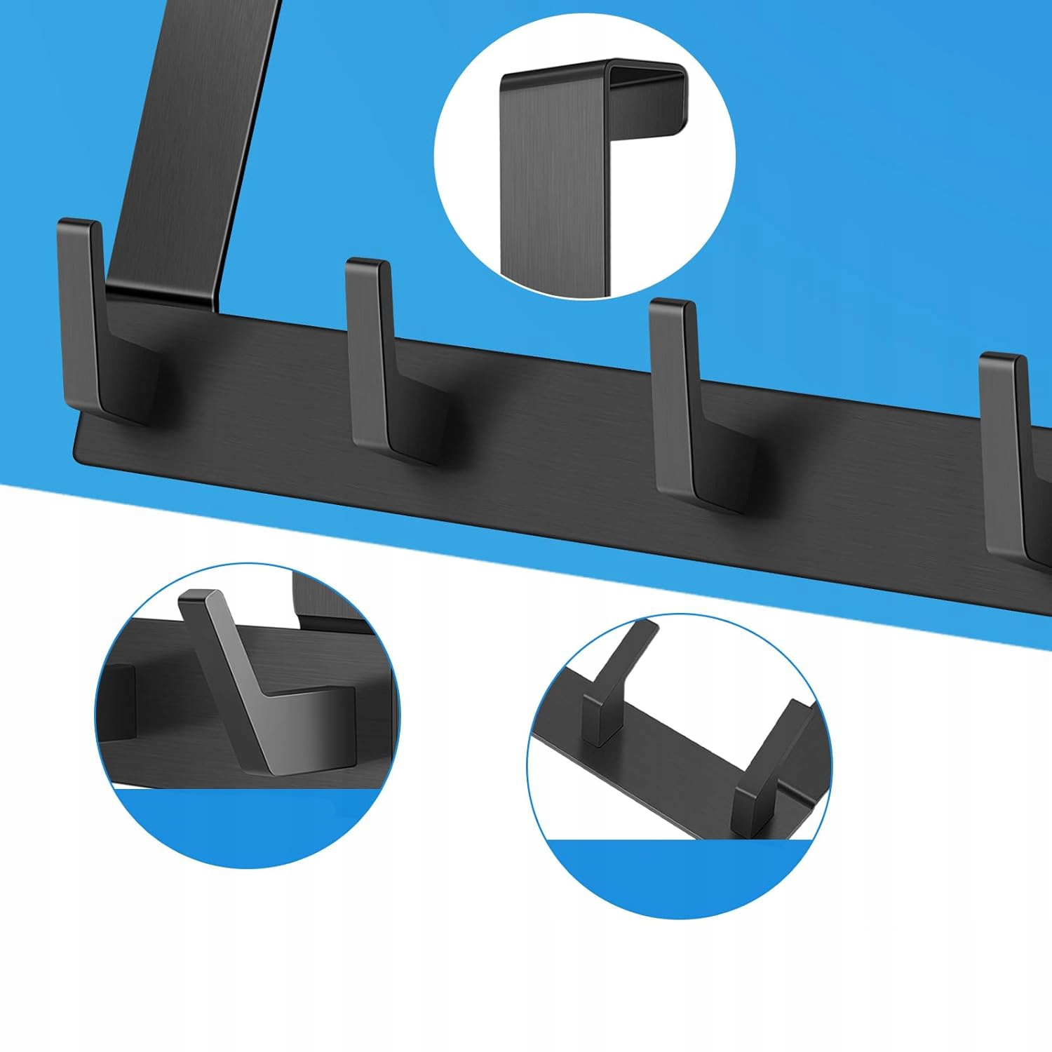 ✅Багатофункціональна дверна вішалка преміум-класу: Ця чорна дверна вішалка з 6 міцними дверними гачками як тримач для куртки - витримує до 10 кг - як дверна вішалка для шарфів, тримачів для рушників, сумок і вішалок або гачків для рушників у ванній кімнаті.
