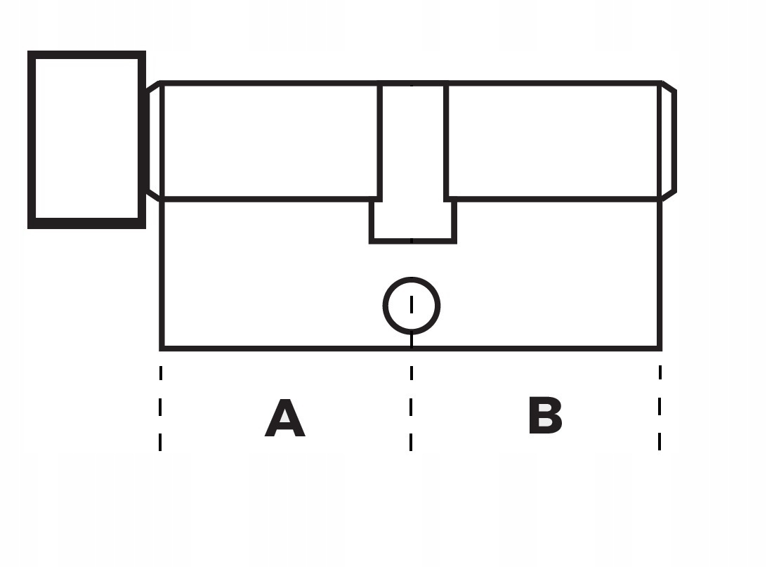 1) Розмір A - це відстань від кріпильного гвинта вставки (осі дверного замка) до кінця зовнішнього краю дверей. До цього розміру також слід додати товщину пластини дверної ручки. Отримана сума є мінімальним розміром A вставки.
