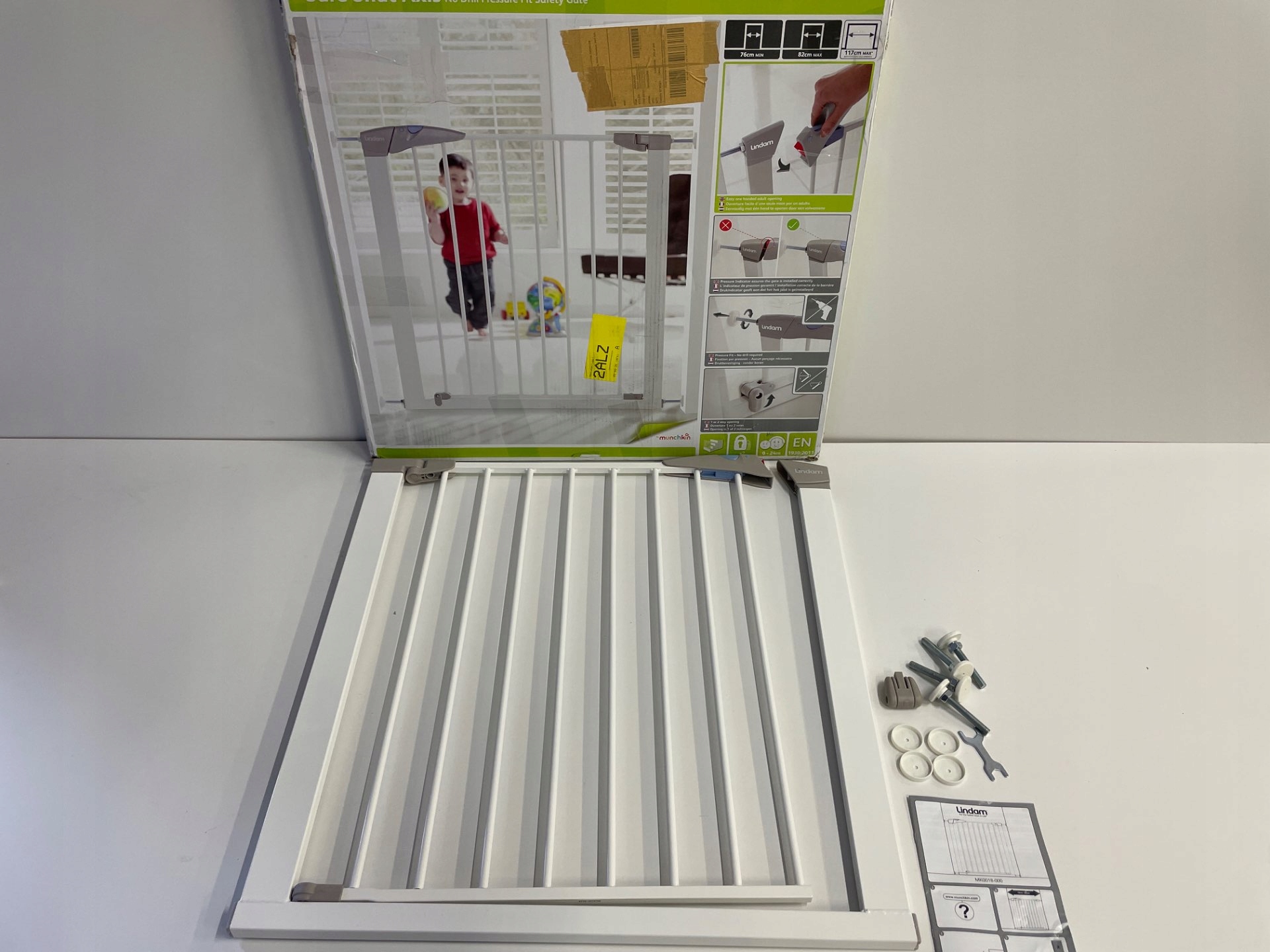 Розсувні запобіжні ворота підходять для отворів шириною 76-82 см. Його можна подовжити до 117 см за допомогою подовжувачів (продаються окремо). • Lindam Munchkin Sure Shut Axis Baby Gate
