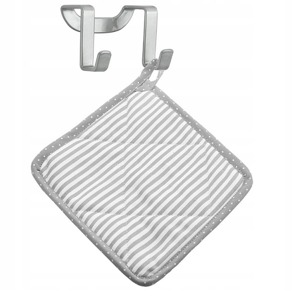 Завдяки 2 гачкам ви зможете зручно повісити фартух, ганчірки, рукавички або інші кухонні аксесуари. Повісьте свої речі всередину або зовні шафи чи ящика, залежно від ваших потреб, щоб мати все під рукою під час приготування їжі чи користування кухнею.