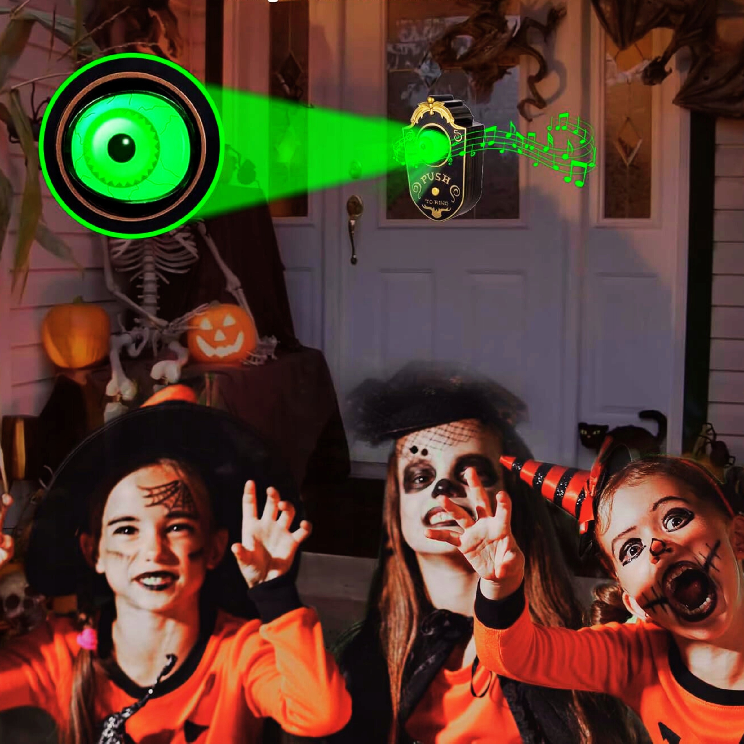 - Дверний дзвінок із страшним зеленим світлом і 4 вітальними текстами та страшними звуками