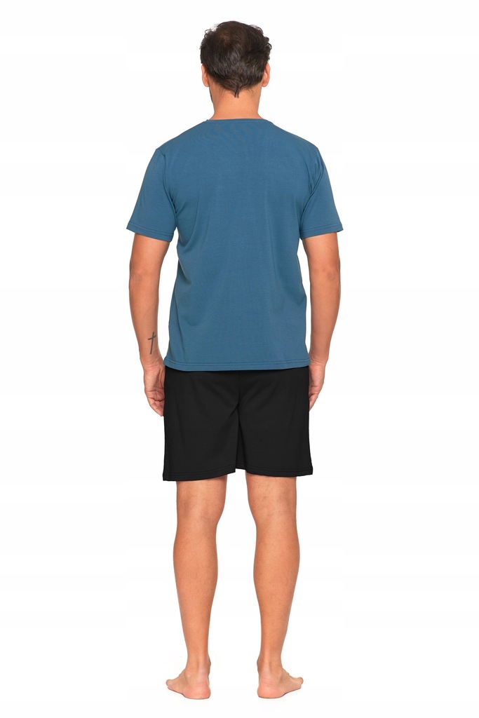 мінімалістичні, зручні та ідеальні для тепліших ночей -це чоловіче піжама -це пропозиція для вентиляторів простоти та комфорту. Гладка коротка сфера T -сорочка в глибокому синьому відтінку добре поєднується з класичними, чорними шортами. Універсальний розріз робить його ідеальним набором як для сну, так і для лінивого ранку. Рухи