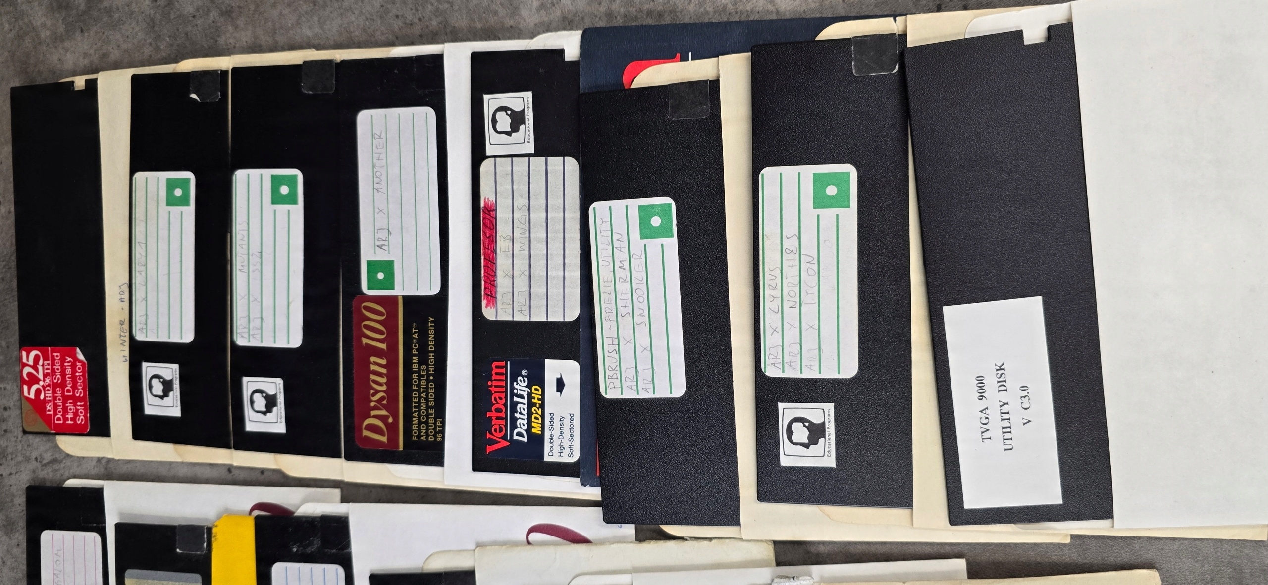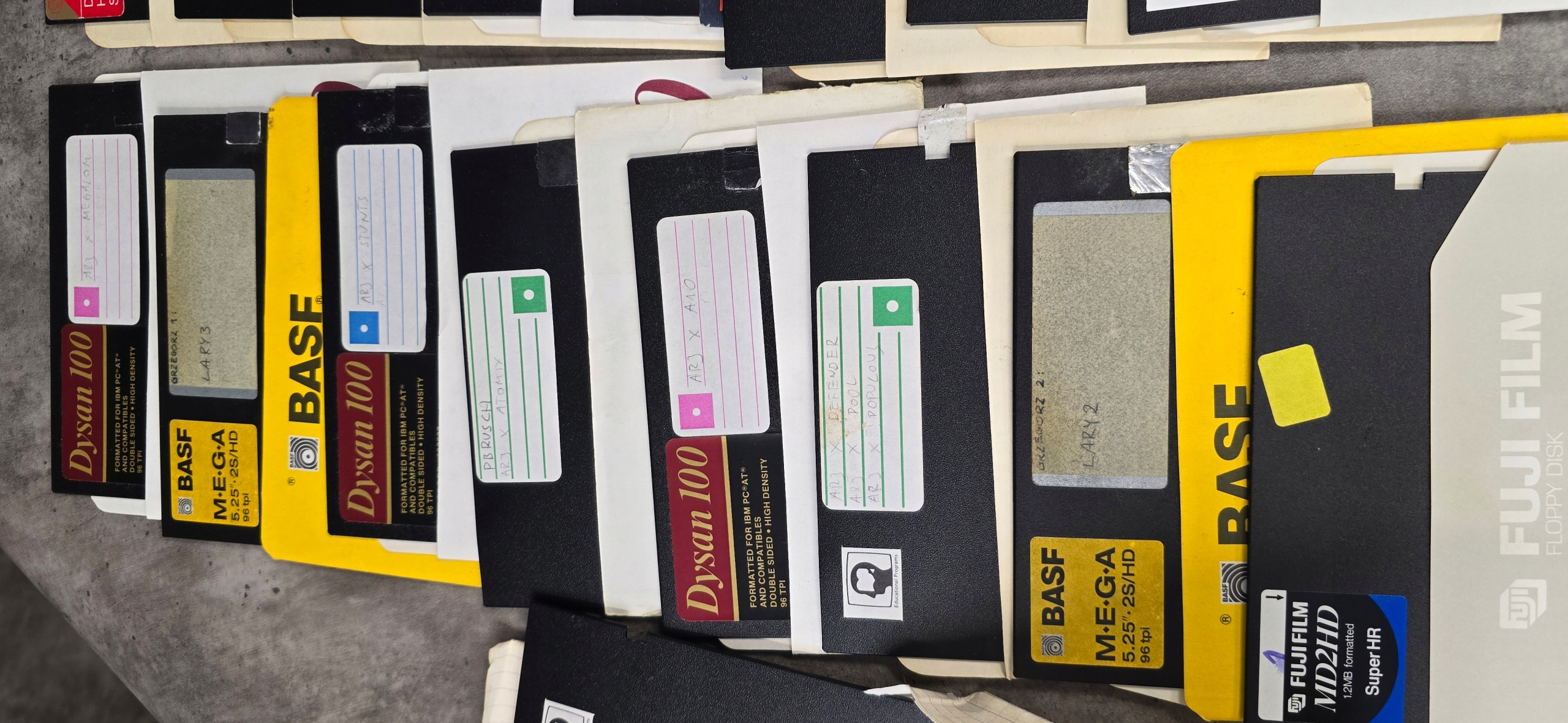 Дві коробки з дискетами DYSAN 100, старі ігри, напевно для Commodore