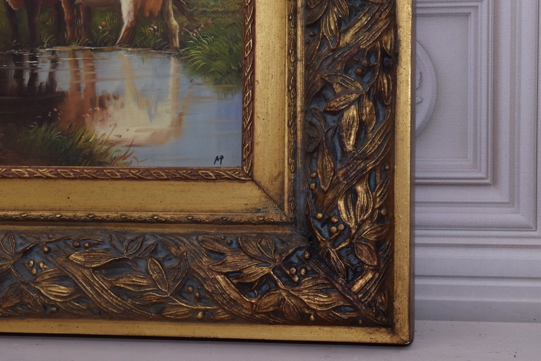 Просматривая «Дві корови на пасовищі - стара олійна картина - золота рамка» данный товар из каталога «Жанровая сцена» вы можете быть уверены, что после оформления заказа, доставки в Украину, вы получите именно то, что заказывали, в оговоренные сроки и европейского качества.