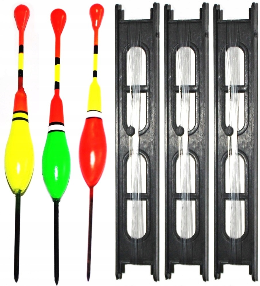 ТРИ ФІКСОВАНІ ПОПЛАВЦІ + ТРИ ОСНАЩЕННЯ - ГАЧОК + ВАГА.