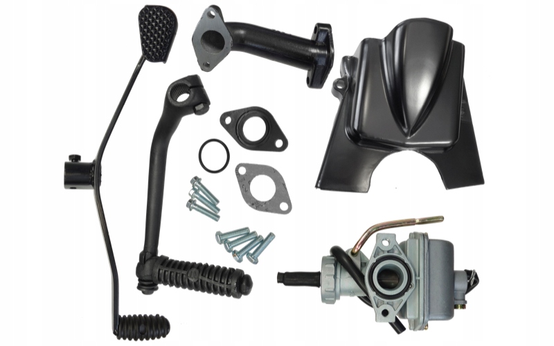 Ціна 1099 злотих за двигун в комплекті з карбюратором, киком і важелем перемикання передач, кришкою ланцюга, колекторними прокладками та болтами, KEIHIN ЯПОНСЬКИЙ карбюратор (на вибір ручний або тросовий дросель), тюнінговий модуль запалювання, реле стартера, котушка запалювання, регулятор напруги.