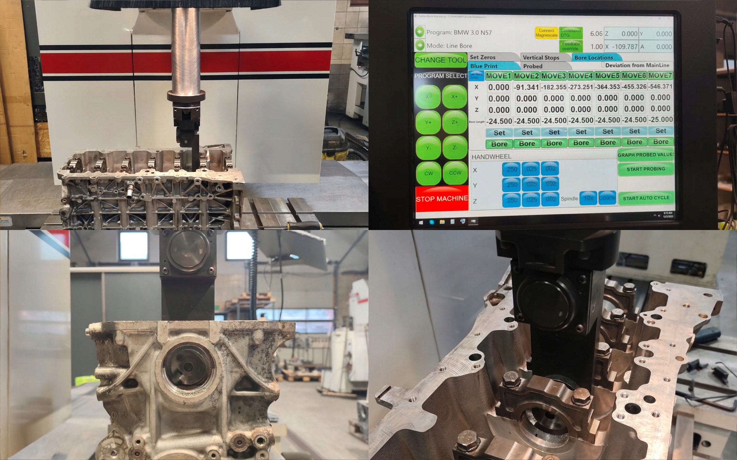 - При необхідності блок підлягає корекції ложа валу шляхом так званого центрування. Верстат з ЧПК забезпечує обробку і точність координат 0,005 мм.