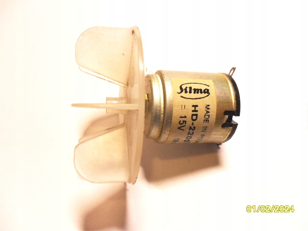 Предметом продажу є робочий двигун HD-2200 15VDC розмірами: діаметр 27 мм, довжина 30 мм + вісь з вентилятором діаметром 55 мм.
