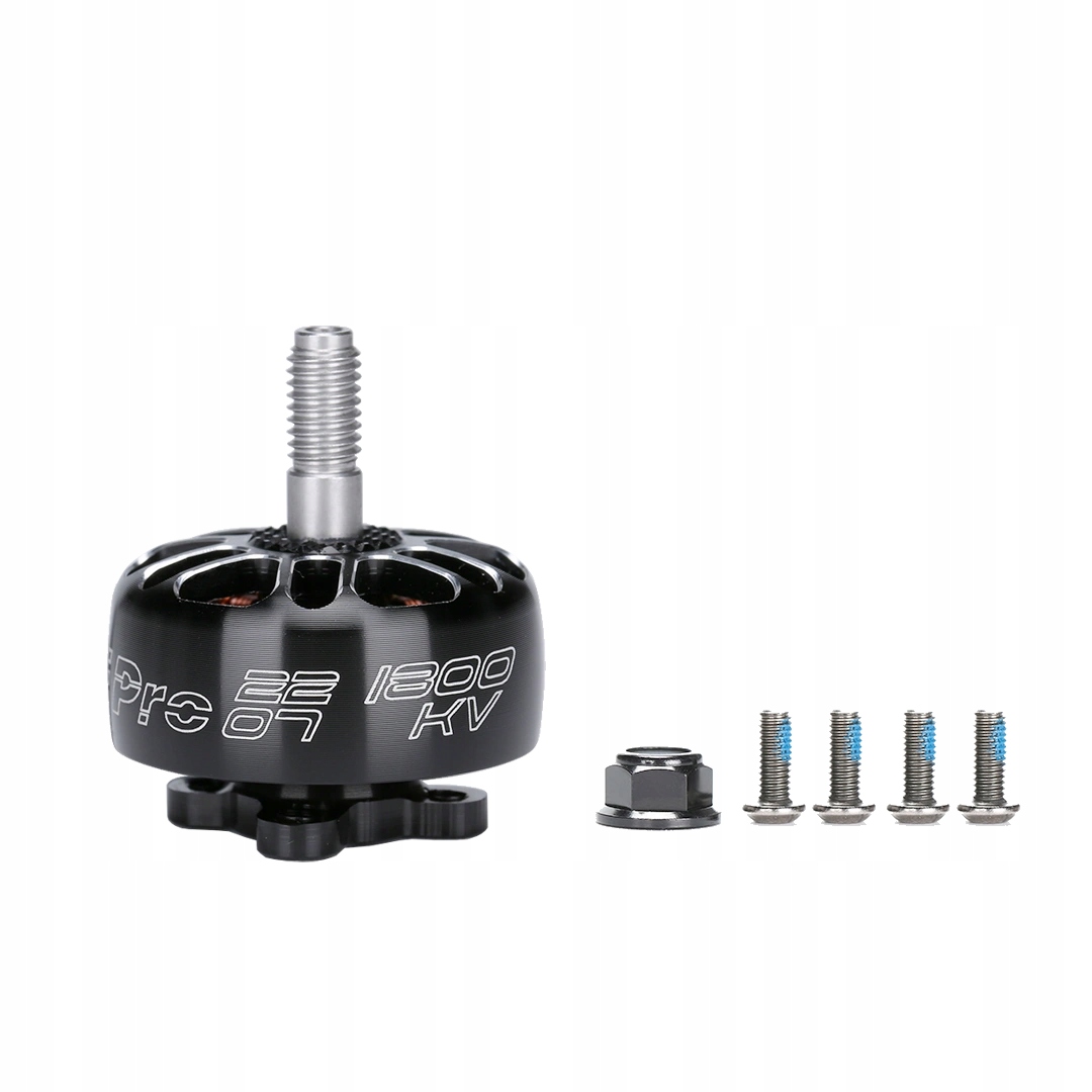 Мотор XING-E Pro 2207 оснащений високоміцним сталевим валом товщиною 4 мм, однонитковою обмоткою для більшої потужності, гвинтом M3 і більшими підшипниками NSK 9x4x4 мм.