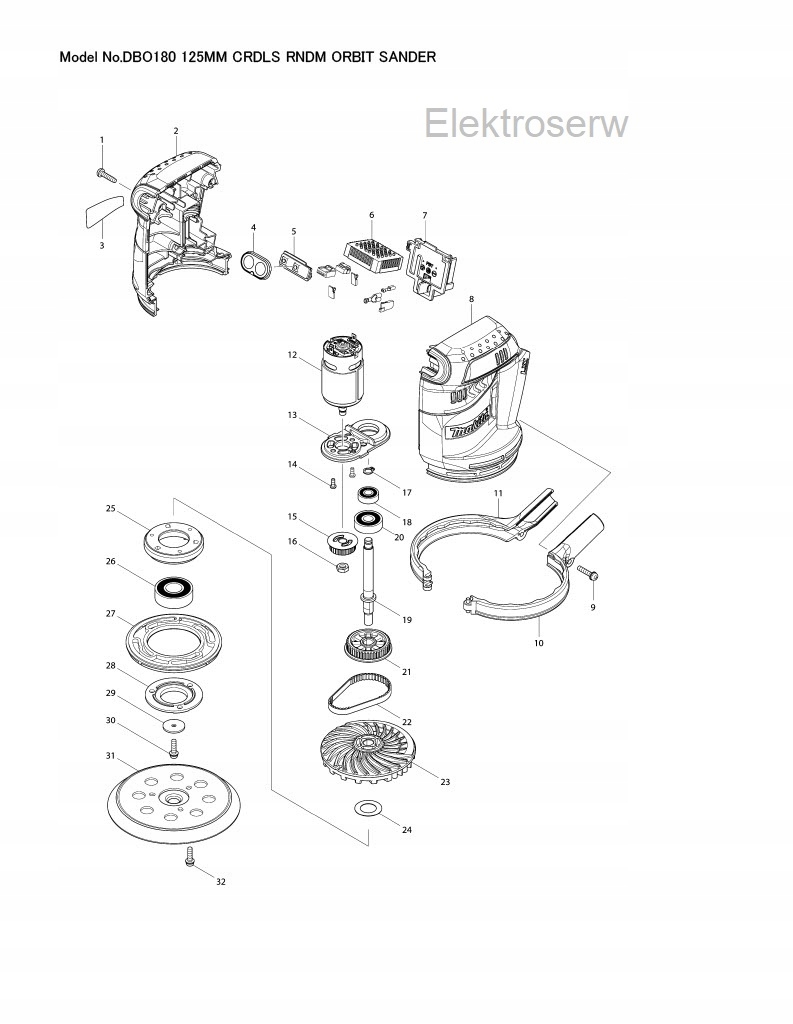 * Електродвигун Makita для акумуляторної ексцентрикової шліфувальної машини BBO180 DBO180