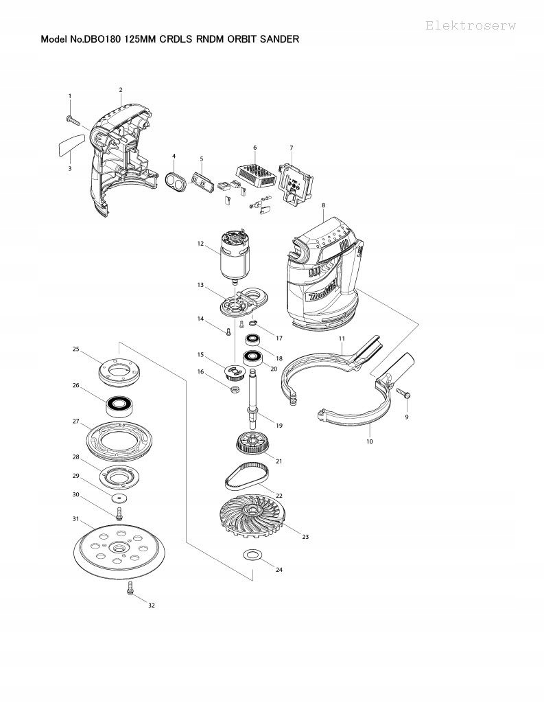 * Електродвигун Makita для акумуляторної ексцентрикової шліфувальної машини BBO180 DBO180