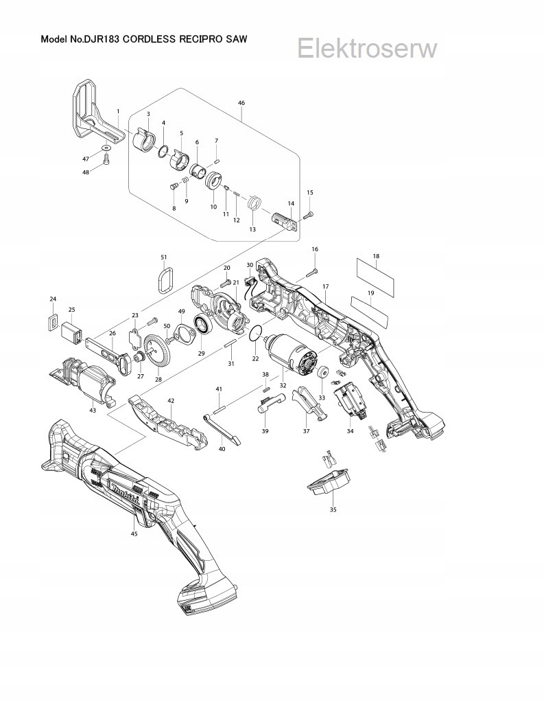 * Двигун постійного струму Makita для акумуляторної шабельної пилки JR145