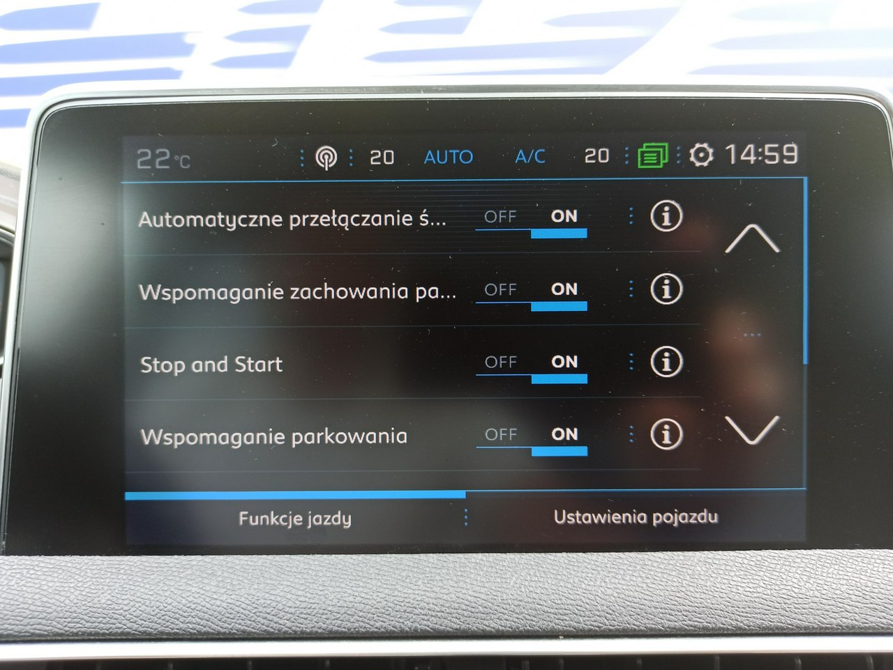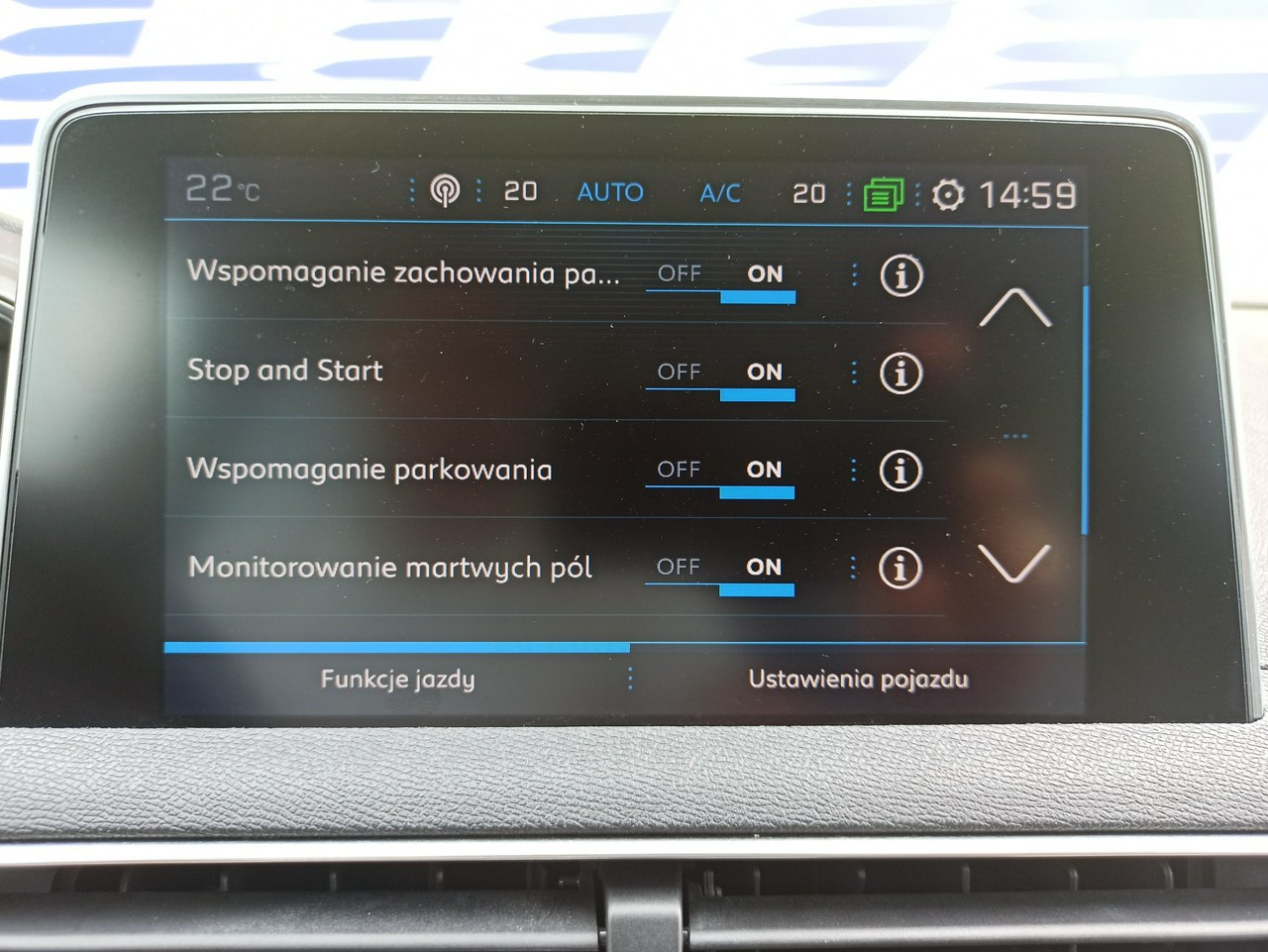- driver assistants (dead field, lane, cruise control, warning about collision ...) Auto