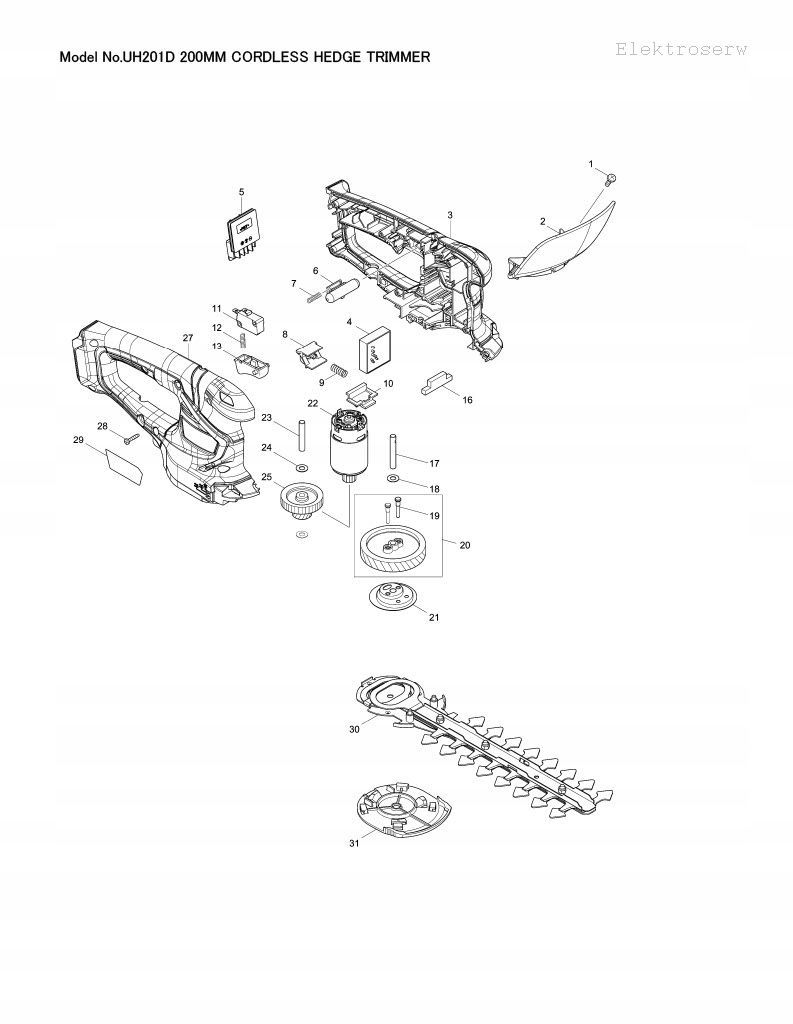 * Електродвигун постійного струму Makita для акумуляторних ножиць для живої огорожі та трави UM600D DUM604 UH201D