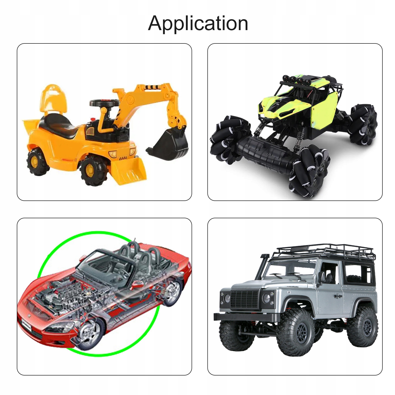 - Спеціально адаптований до модифікації автомобіля (висока швидкість), використовується для спеціальних дитячих іграшок для верхової їзди.