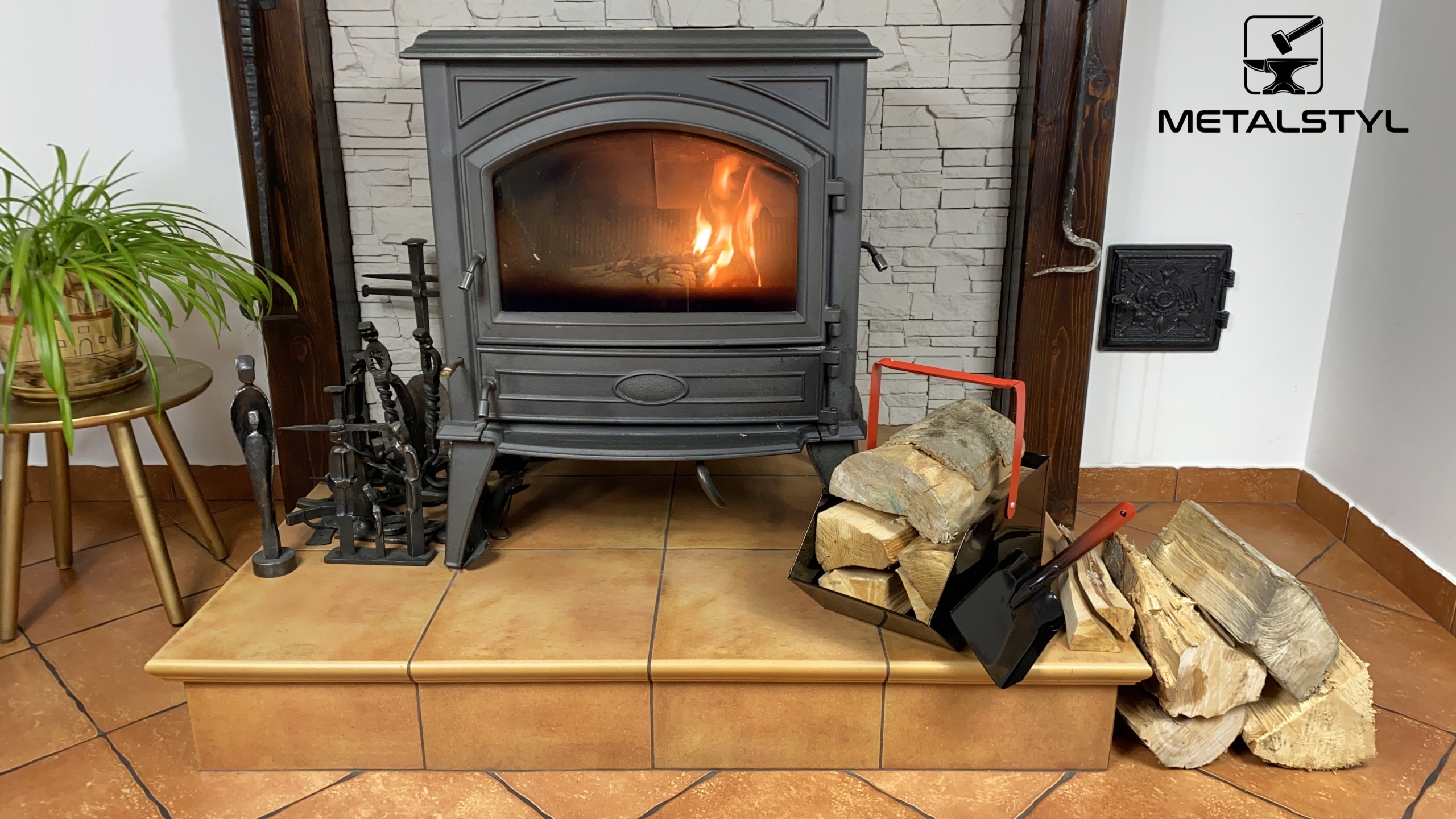 Вугільний пальник сталевий фарбований з лопатою, кочергою, скребком + SADPAL Каталізатор спалювання сажі