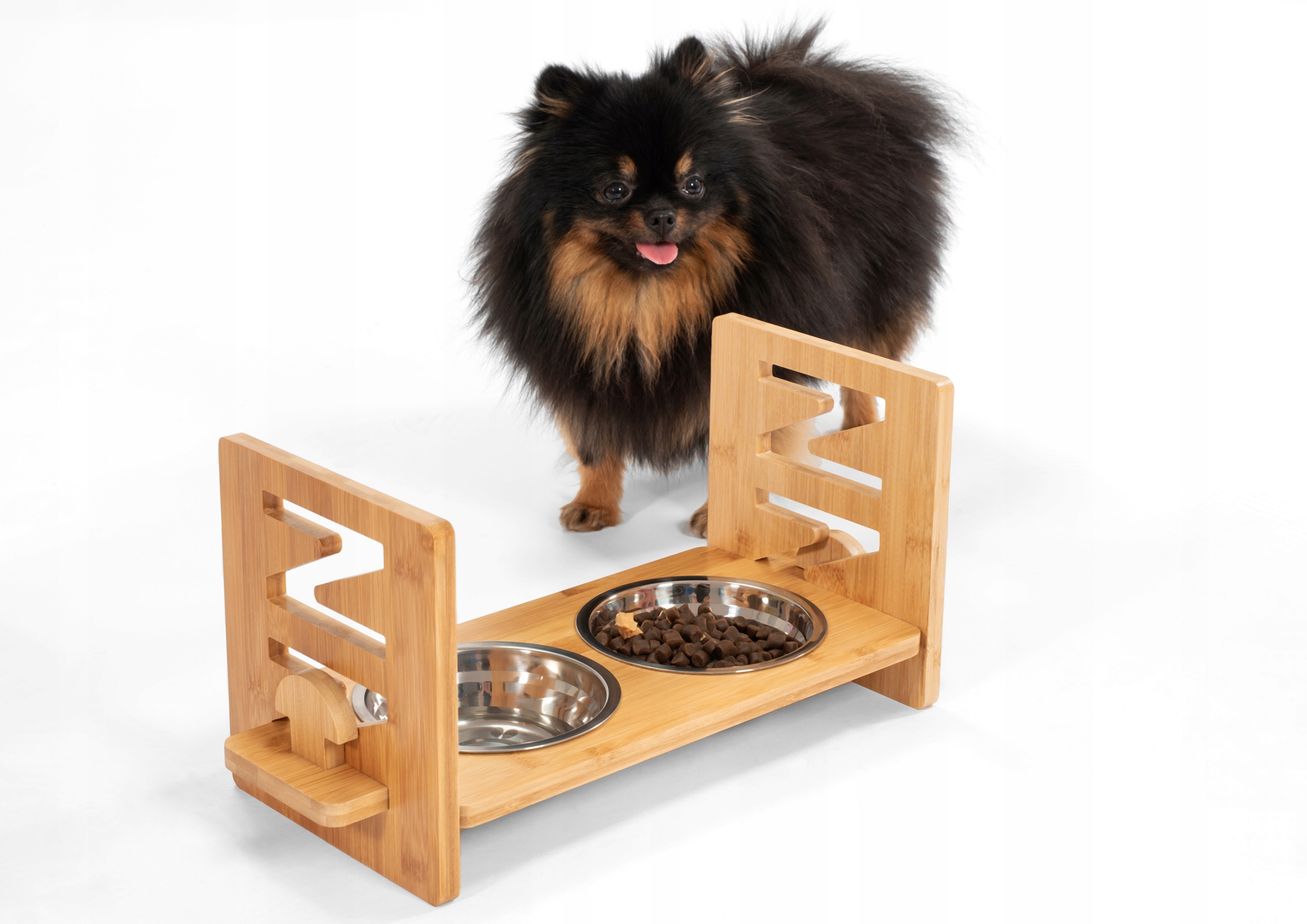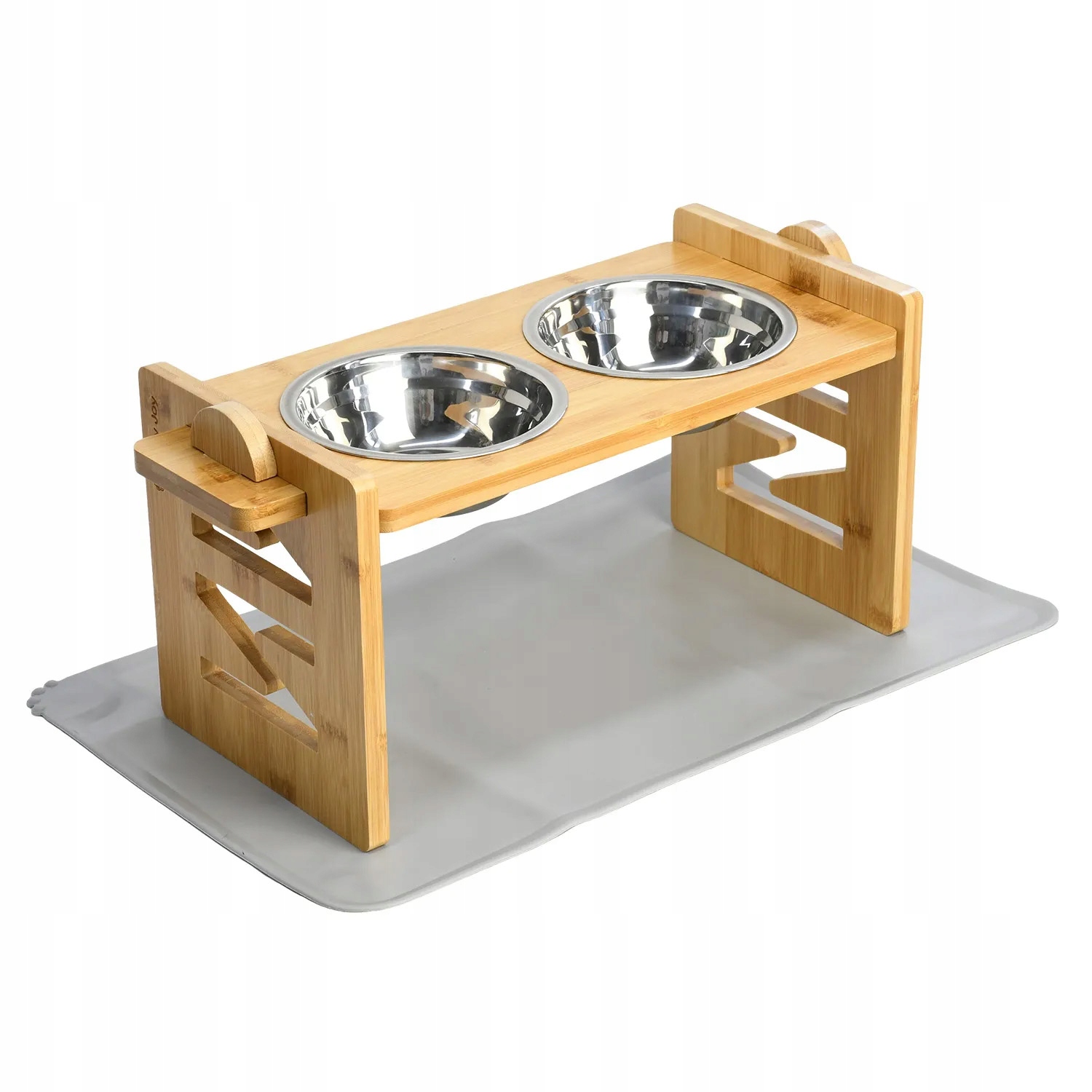 Набір з 2-х мисок для їжі та води та бамбукової підставки з регульованою висотою - елегантне та практичне рішення для подачі води та їжі домашнім тваринам. Продукт був розроблений з думкою про комфорт і здоров'я вашого улюбленого вихованця. Виготовлений з високоякісних матеріалів, забезпечує довговічність і легкість чищення.