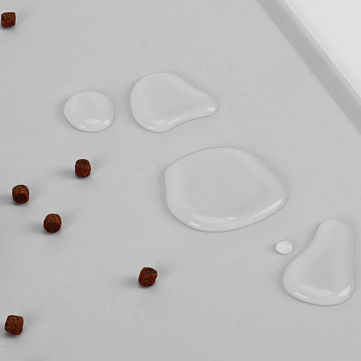 У комплекті з мисками постачається силіконовий килимок, який захищає підлогу від бризок і запобігає розливанню їжі на підлогу. Крім того, він не ковзає, тому підставка не рухається.