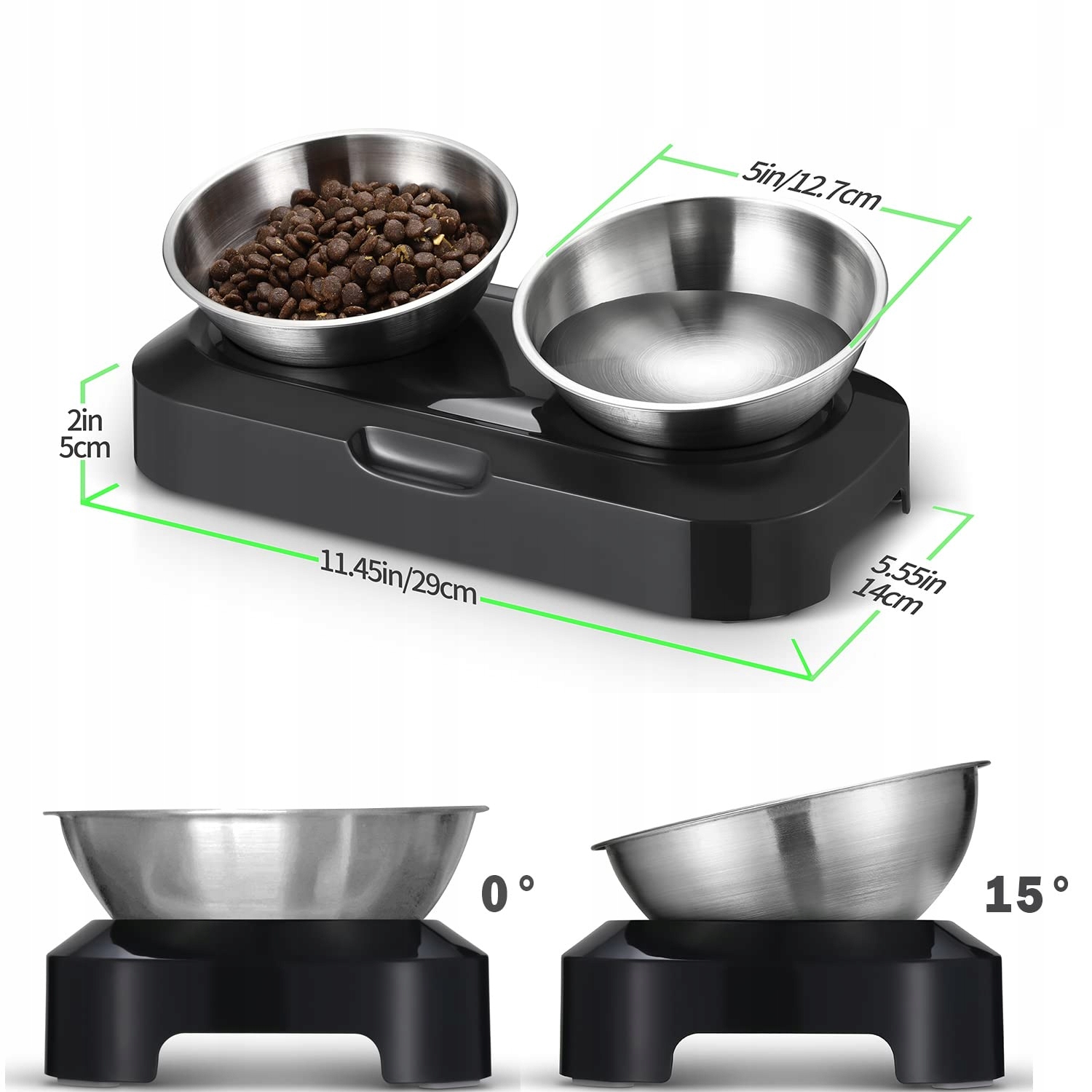 ДВІЙНА МИСКА НА ПІДСТАВЦІ ДЛЯ СОБАК І КОТІВ, ПРОТИКЛИЗКИЙ НАХИЛ