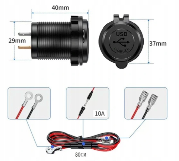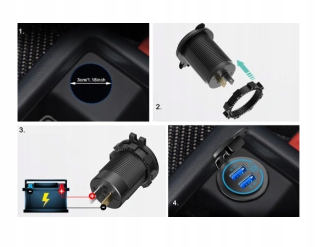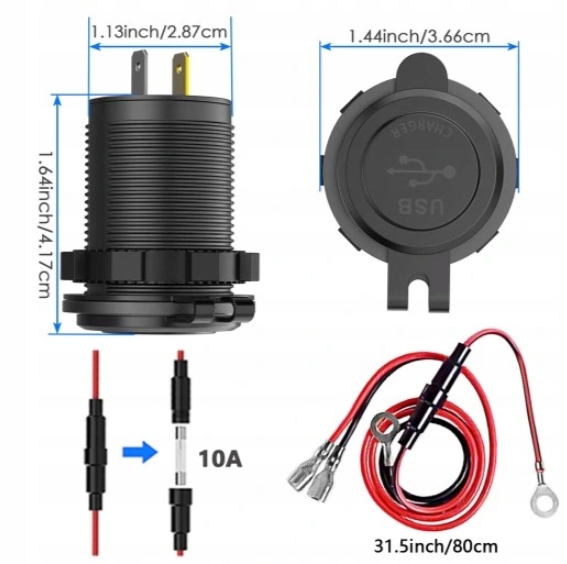【Просте встановлення】Ви можете замінити гніздо прикурювача безпосередньо у вашому автомобілі або просвердлити та встановити його самостійно; просто просвердліть круглий отвір діаметром приблизно 3 см / 1,18 дюйма, вставте зарядний пристрій USB, затягніть гвинт і з’єднайте позитивний і негативний полюси. Це чудова заміна USB.