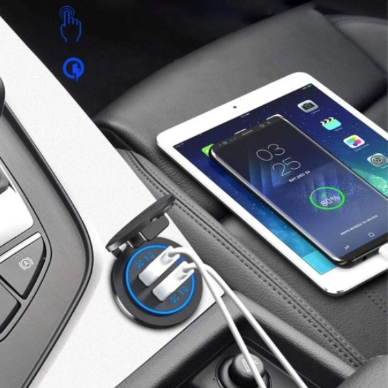【Автомобільний порт USB QC 3.0】Порт Quick Charge 3.0 може заряджати сумісні пристрої до 80% усього за 35 хвилин. Він забезпечує зарядку в 4 рази швидше, ніж звичайна зарядка, і зворотно сумісний з усіма версіями QC. 【Незалежний кнопковий перемикач】 Перемикач керує 2 портами USB, світлодіодним підсвічуванням, що запобігає розрядці акумулятора через постійне світло після запуску двигуна та ефективно продовжує термін його служби. (Примітка! Перемикач тепер увімкнено за умовчанням).
