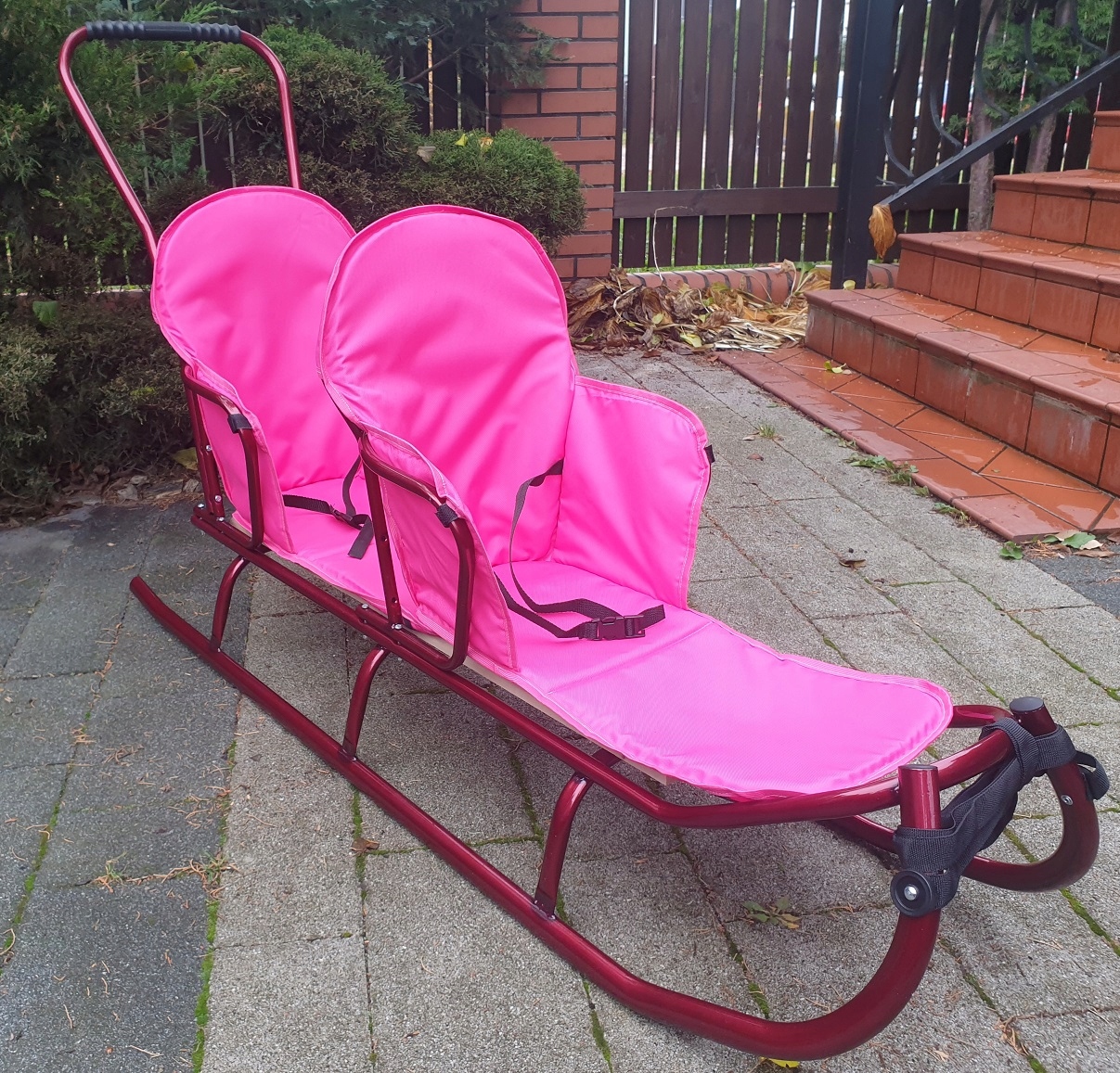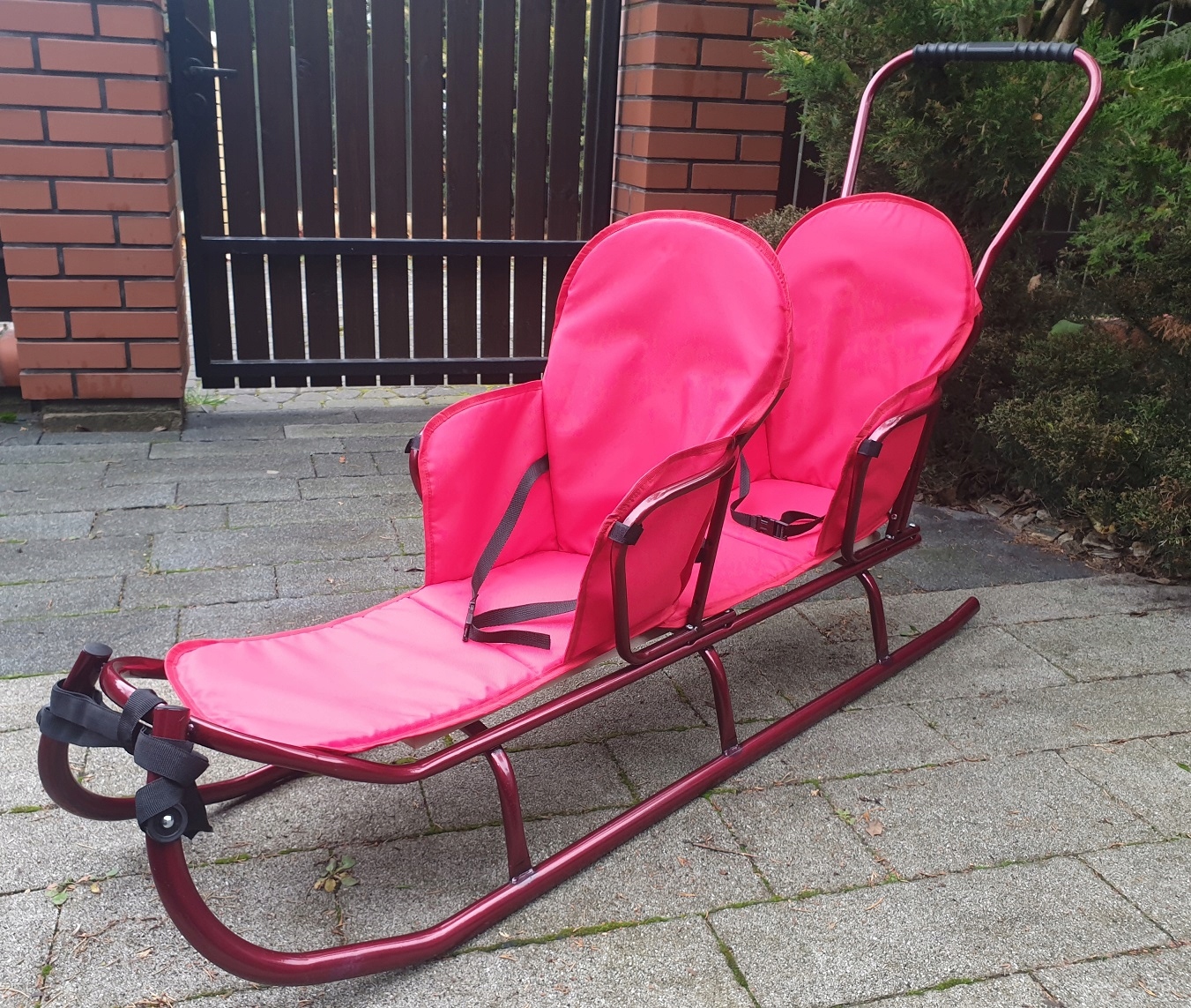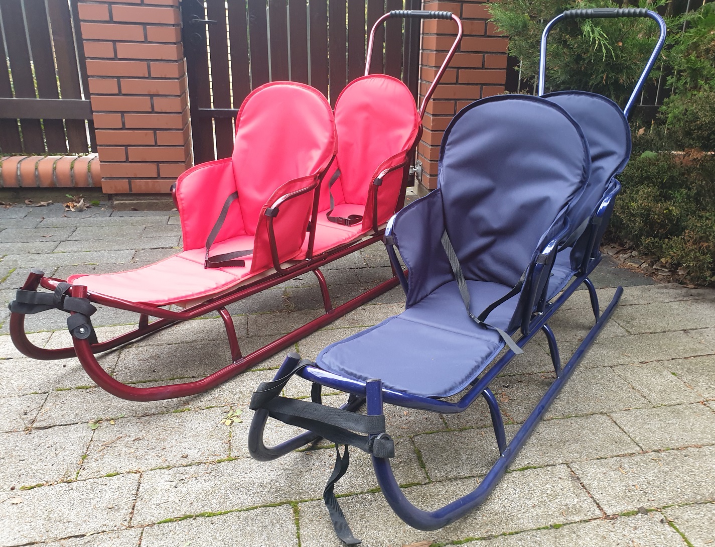 ДВІМІСНІ САНКИ ТАНДЕМ ПРЕМІУМ + ШТУЧАННЯ + МАТРАЦИ + РЕМЕНІ