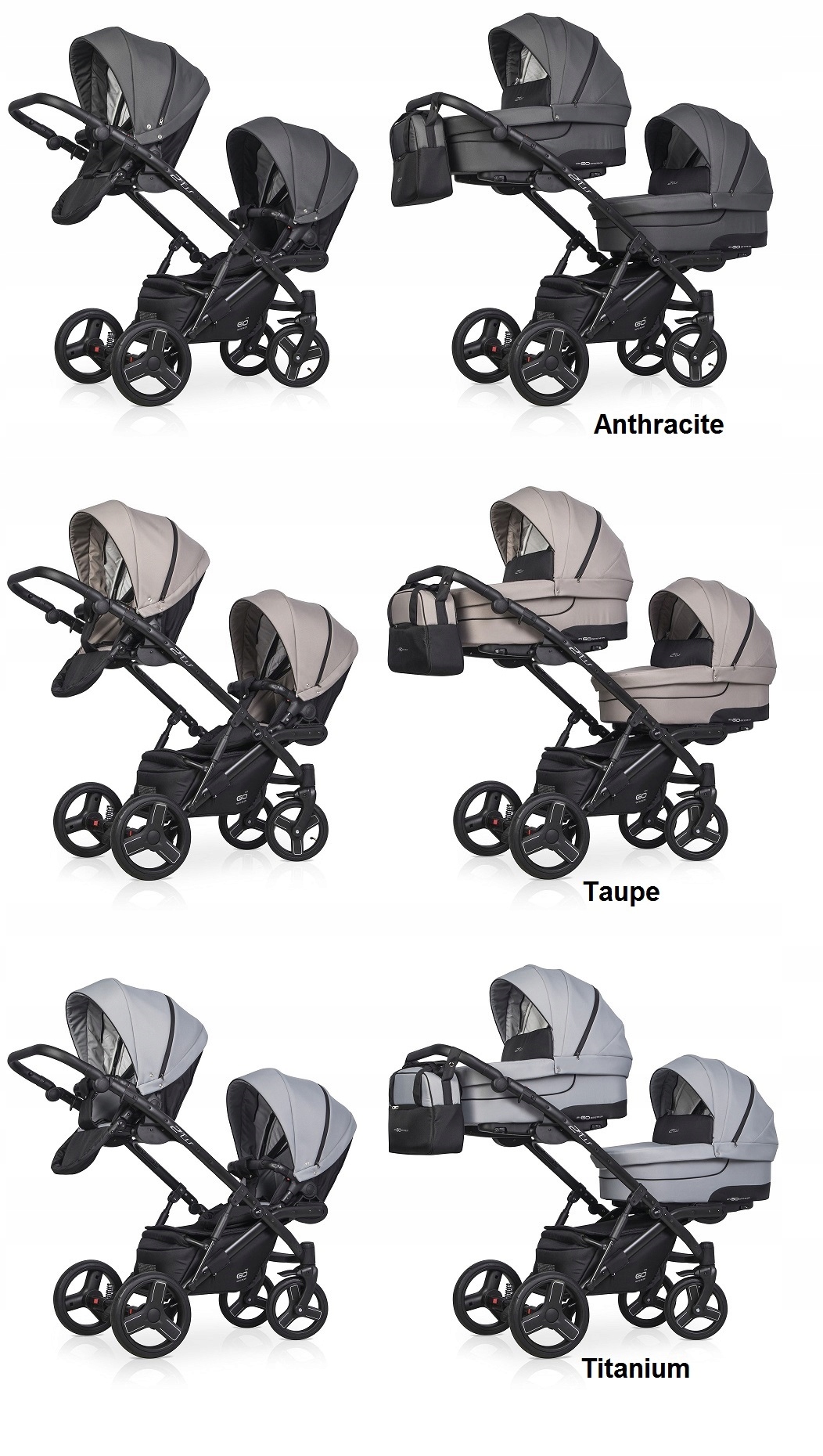 багатофункціональна коляска-тандем для двійні або дітей рік за роком,