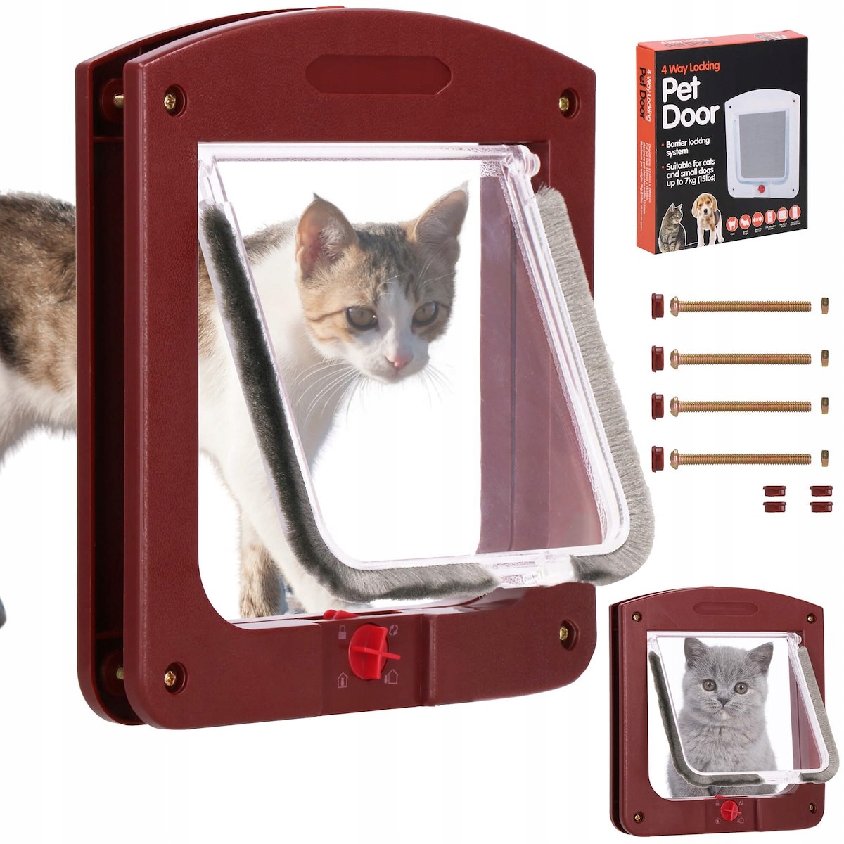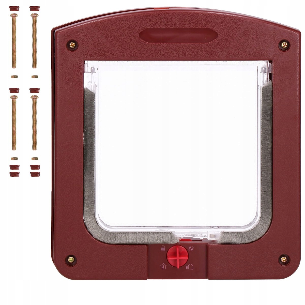 Встановлення дверей дуже просте та інтуїтивно зрозуміле. У комплект входять всі необхідні монтажні елементи: гвинти, гайки та ковпачки. Спочатку позначте на дверях місце, де ви будете вирізати отвір - пам'ятайте, що воно знаходиться на відповідній висоті для вашої тварини і що його розміри збігаються з розмірами отвору в дверцятах. Вирізавши отвір, поставте дверну коробку на місце і відзначте місця, де потрібно просвердлити отвори для шурупів. Як тільки це буде зроблено, встановлення дверей стане дитячою грою. Довжина шурупів дозволяє встановлювати двері зі стандартною товщиною приблизно 2 см.