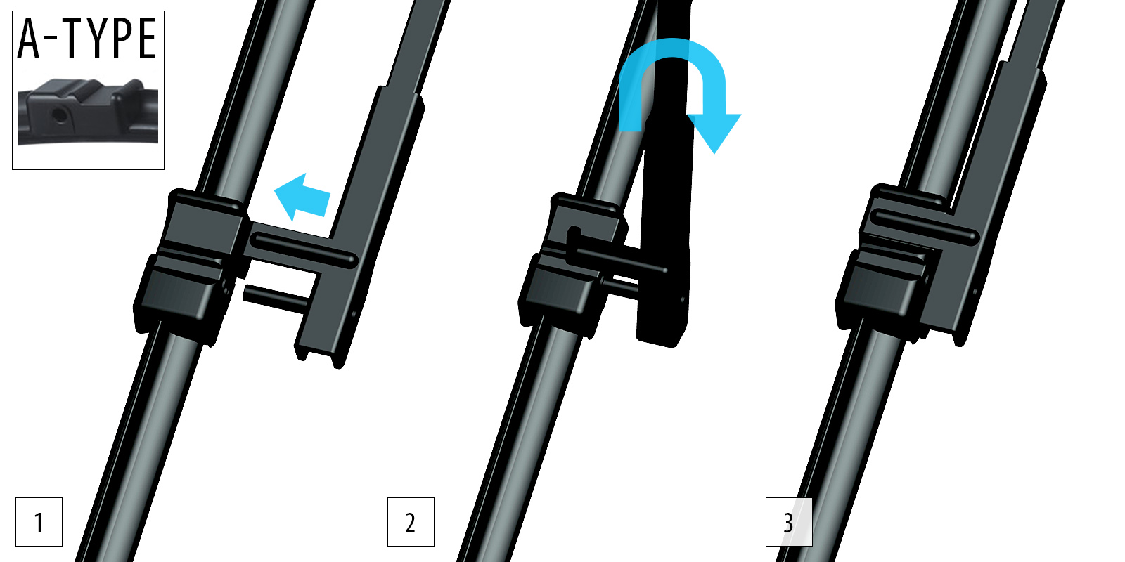 Двірники без каркасної конструкції з інтегрованим спойлером, завжди включають два склоочисники, мають спеціальні кріплення та відповідну довжину (мм) для конкретної моделі автомобіля.