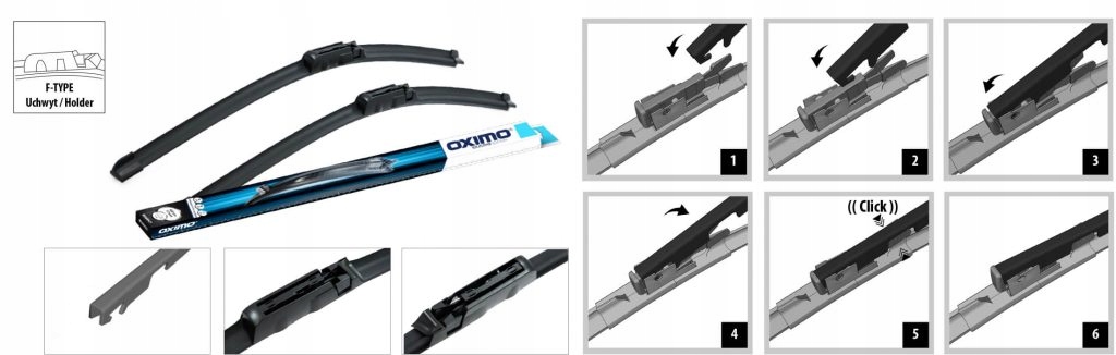 Плоскі склоочисники Oximo замінюють сервісні склоочисники, які часто коштують досить дорого. Виготовлені із суміші гуми з силіконом, вони забезпечують хороший збір води та тиху роботу. Важливим елементом склоочисників є спосіб кріплення. У запропонованому варіанті інсталяційний адаптер сумісний із заводським - стаціонарний і призначений для конкретної моделі автомобіля, що значно полегшує установку . Продукція Oximo - це килимки економ-класу, що характеризуються високим співвідношенням ціни та якості. У своїй категорії вони є одними з кращих на ринку і часто порівнюються з набагато дорожчими продуктами провідних компаній.