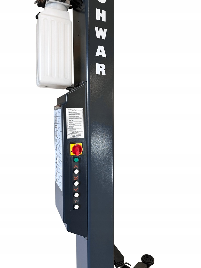 опори, розміщені під транспортним засобом, скручуються та кріпляться до рук і відстаней. Контроль процесу підйому та опускання кнопок на панелі управління, без необхідності вручну сповільнювати блокування на кожному стовпці. Обидва стовпці мають електромагнети, які автоматично деактивують блокування після натискання кнопки опускання на панелі управління.