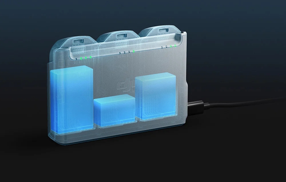 ✔ Szybkie заряджає багато акумуляторів : Хаб дозволяє одночасно заряджати до трьох батарей за 60 хвилин за умови, що використовується DJI -зарядний пристрій з 65 Вт, який значно прискорює процес підготовки дрона для наступного польоту.