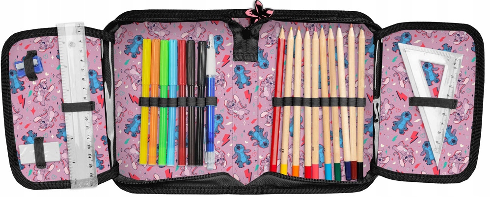 Класичний корпус олівця з однокамерним олівцем, з двома клаптями всередині. Багатий оформлений. Справа олівця вміщує найнеобхідніші шкільні аксесуари. Masania