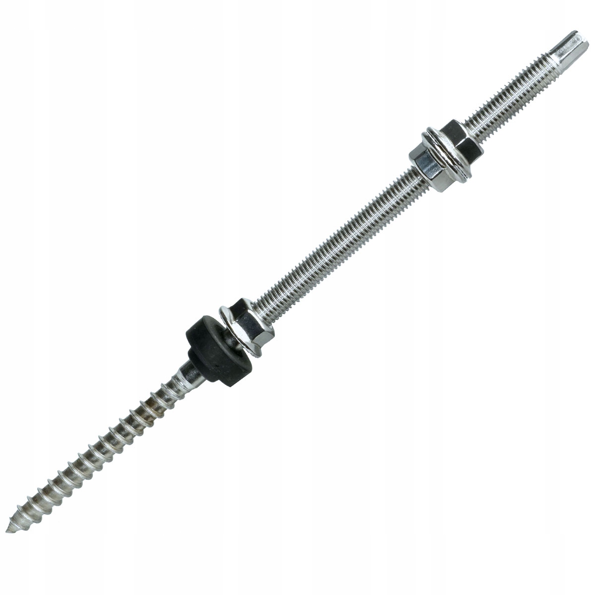 Гвинт, призначений для встановлення фотоелектричної установки, оснащений гайками фланця M10 та прокладкою.
