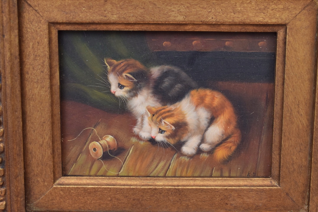 Двоє маленьких кошенят - грають коти - картина маслом - золото чорна рамка