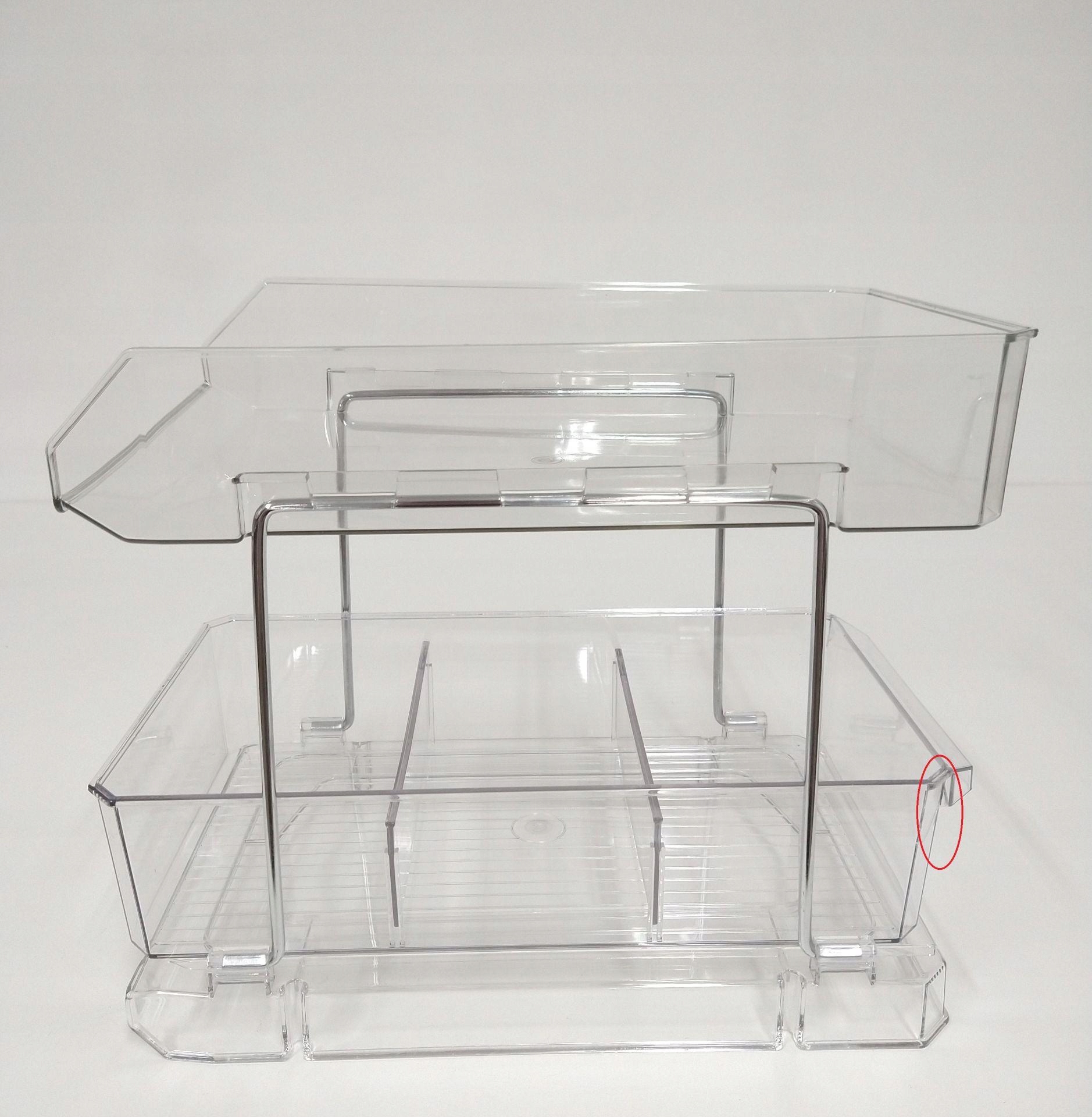 【Super Size】 - розмір кухонної шафи складки з організатором - 31,7 х 18,9 х 21,6 см. Верхній шар висувного кухонного організатора не має відсіків, а нижній шар - 2 відсіки. Телескопічний висувний ящик для кухні може полегшити ваше повсякденне життя.