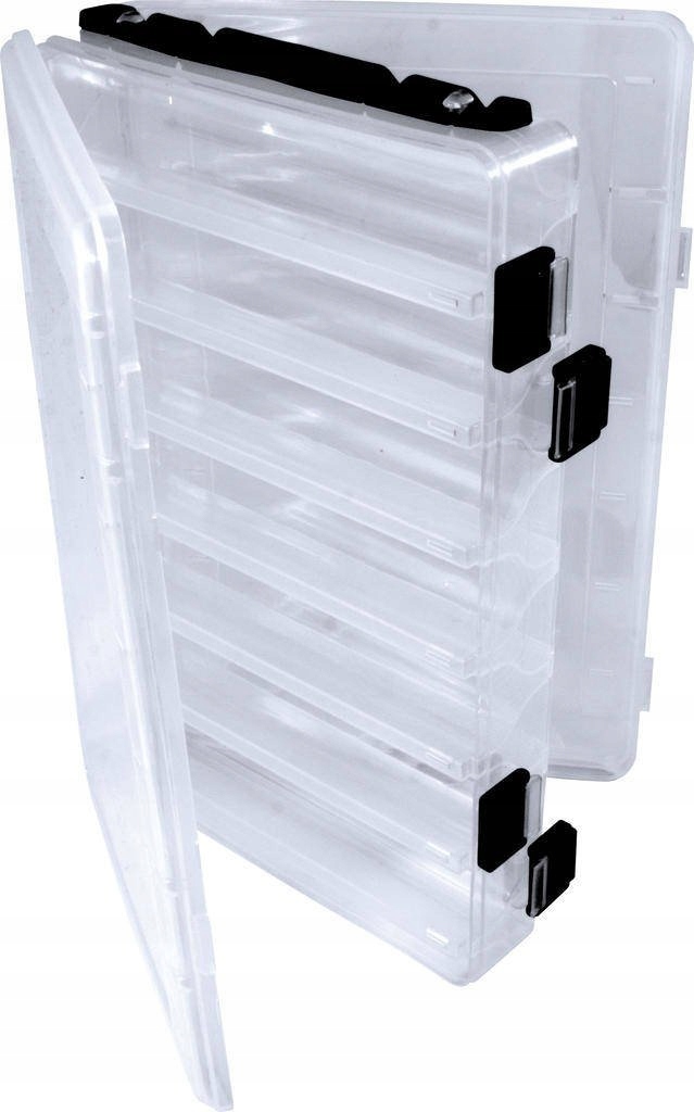Коробка двостороння, загалом вміщує до 14 великих воблерів.