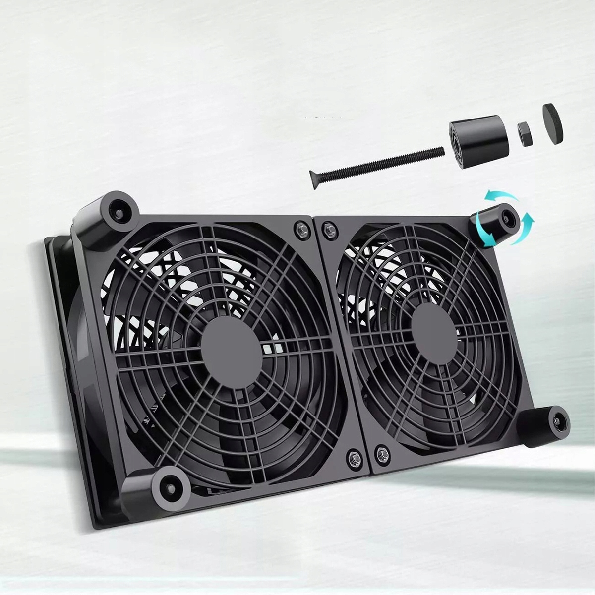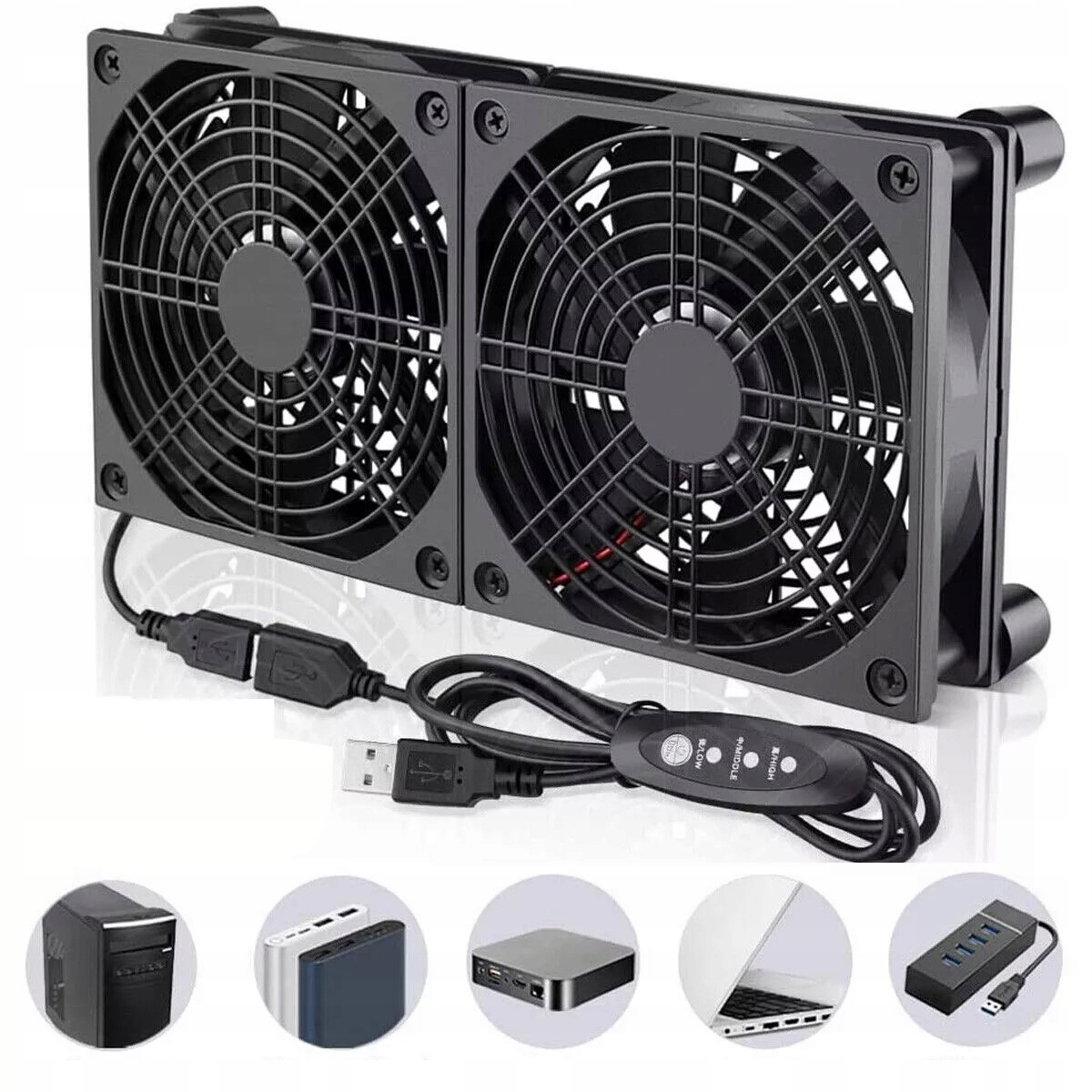 Потік повітря становить до 62,7 CFM x2, а пропелери генерують приблизно 22,3 дБА x2, що робить його одним із найтихіших і найефективніших вентиляторів такого типу на ринку. Користуватися цим продуктом просто - просто розмістіть на ньому маршрутизатор. Ще одна перевага полягає в тому, що обидва вентилятори працюють одночасно, забезпечуючи чудовий потік повітря.