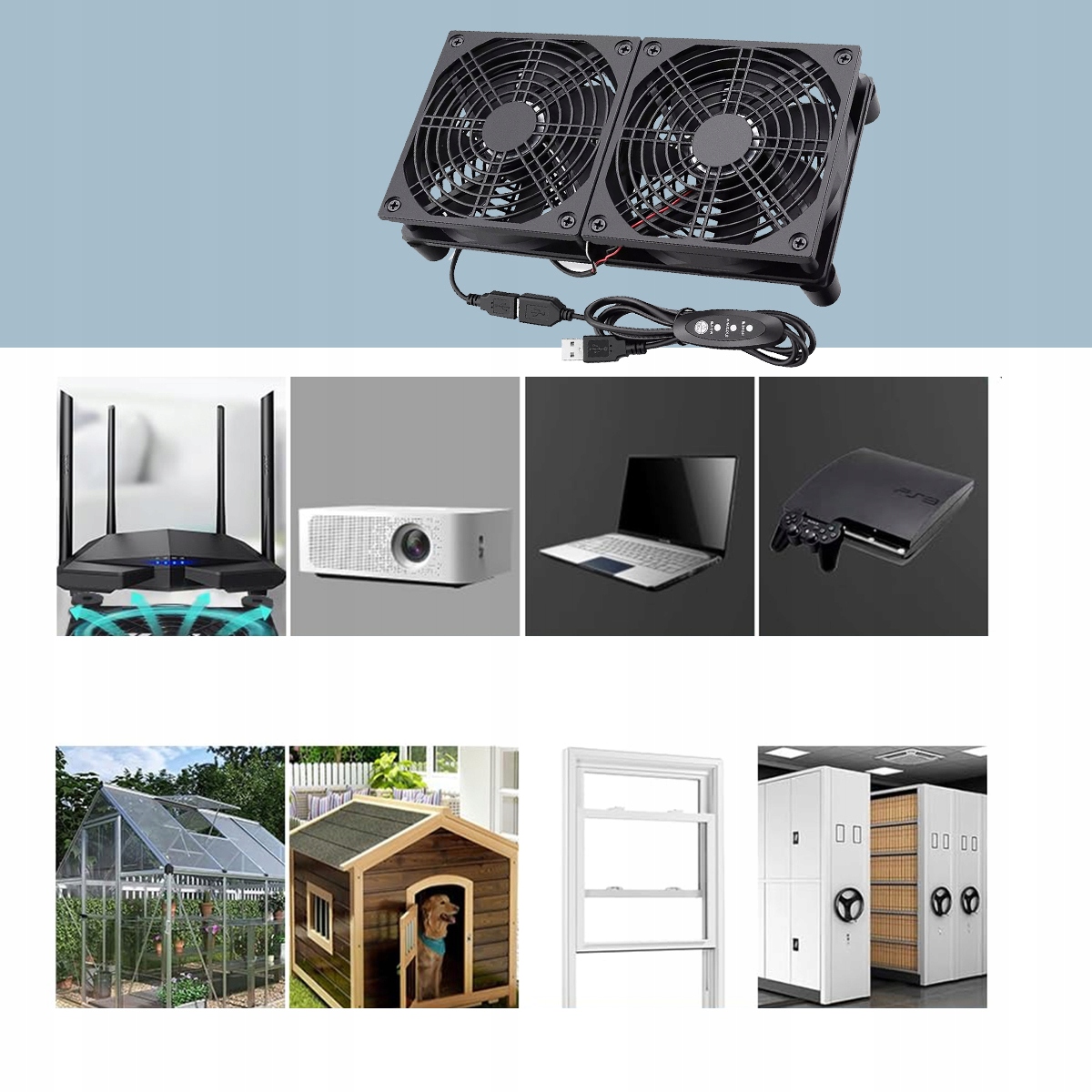 ✅ Вентилятор можна розташувати горизонтально/вертикально та підходить для роутерів, ігрових консолей PS4, Xbox, ноутбуків, ТВ-приставок, проекторів тощо.