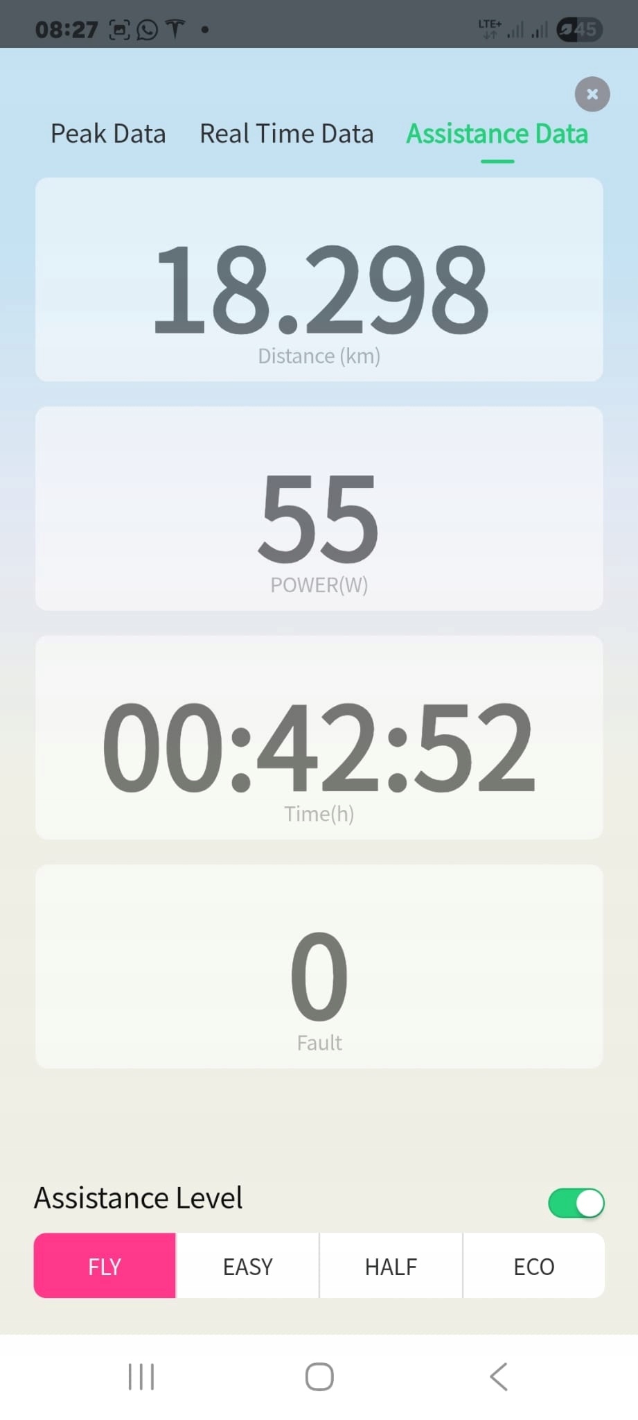 - Режим 1 (низький рівень підтримки): це режим «еко», який забезпечує найменшу підтримку, але дозволяє досягти максимально можливої дальності — близької до заявлених 50 км. Ідеально підходить для рівних маршрутів.